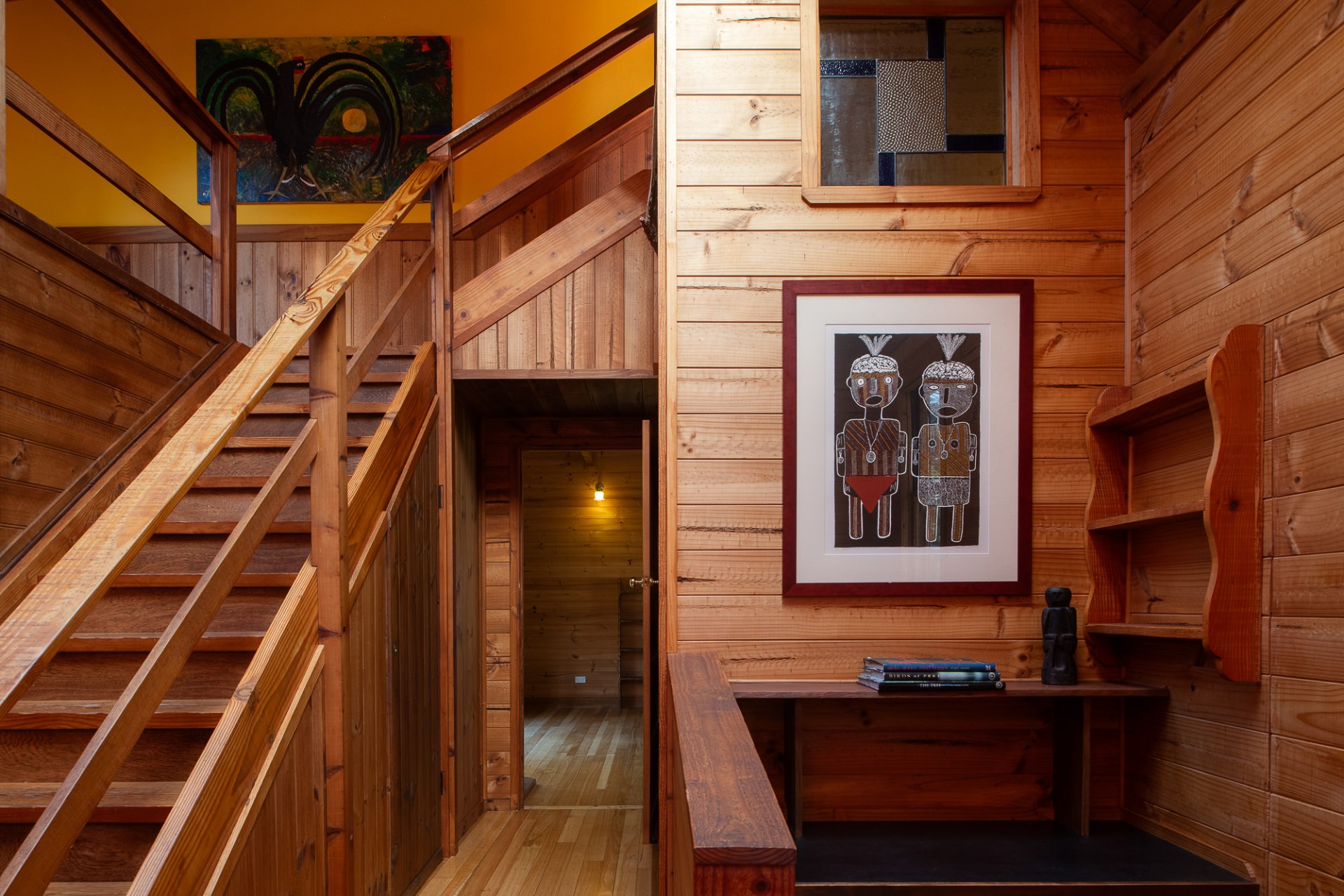 - light filled hallway, that leads to the south side of the house, as well as upstairs. Hallway houses a nook with a built-in-desk and bookshelves.