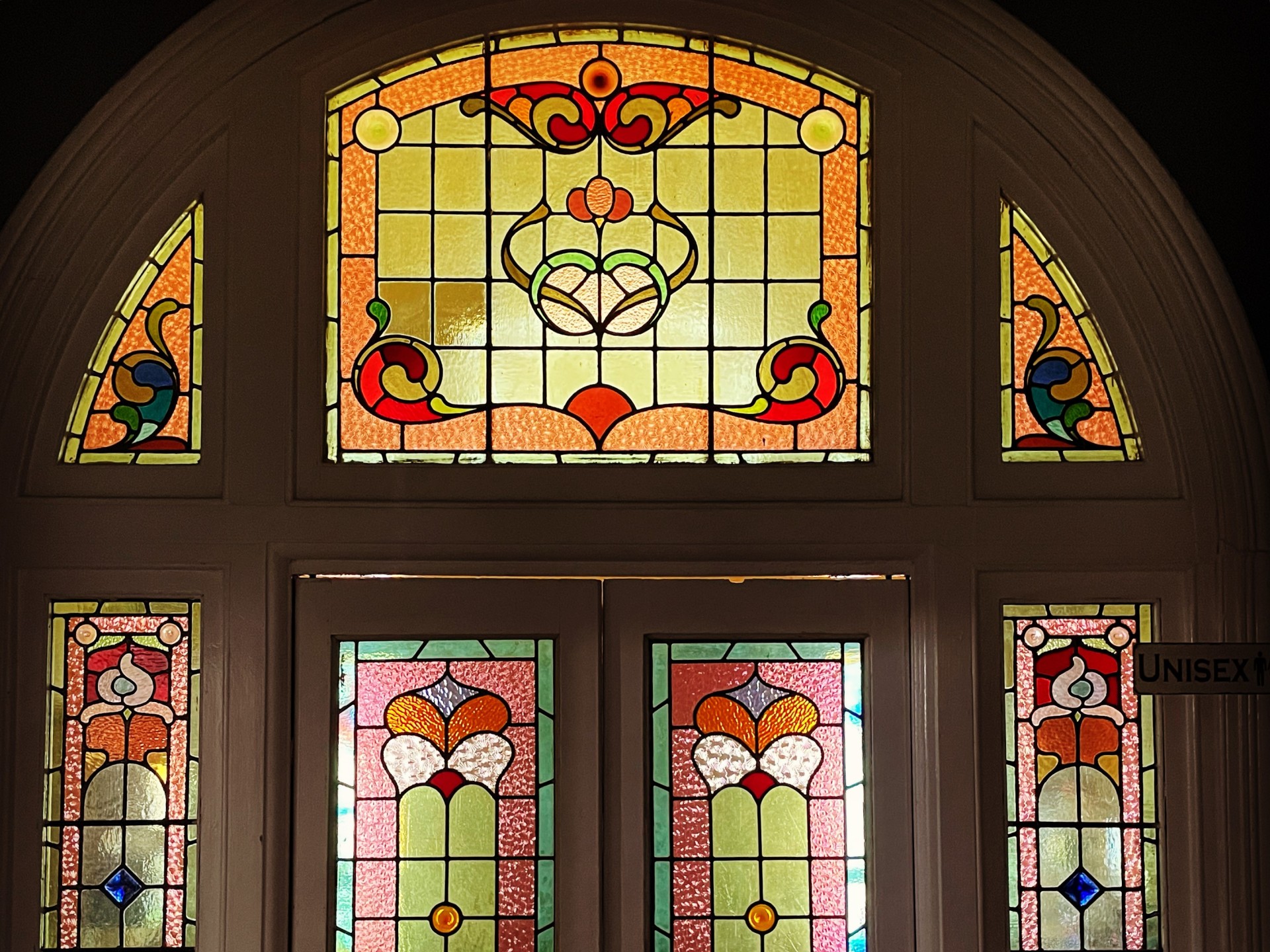 Moving through the bar into the hallway there is a stunning original lead light door with colours so vivid considering its age.