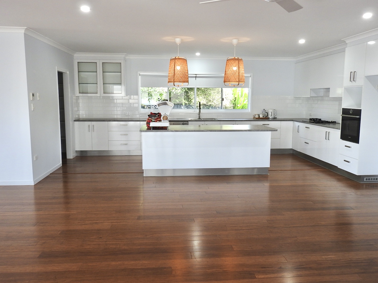 The wow factor starts at the front door with a huge, versatile, open-plan living and dining area with sliding glass doors that open up to the perfect north facing covered timber deck.
