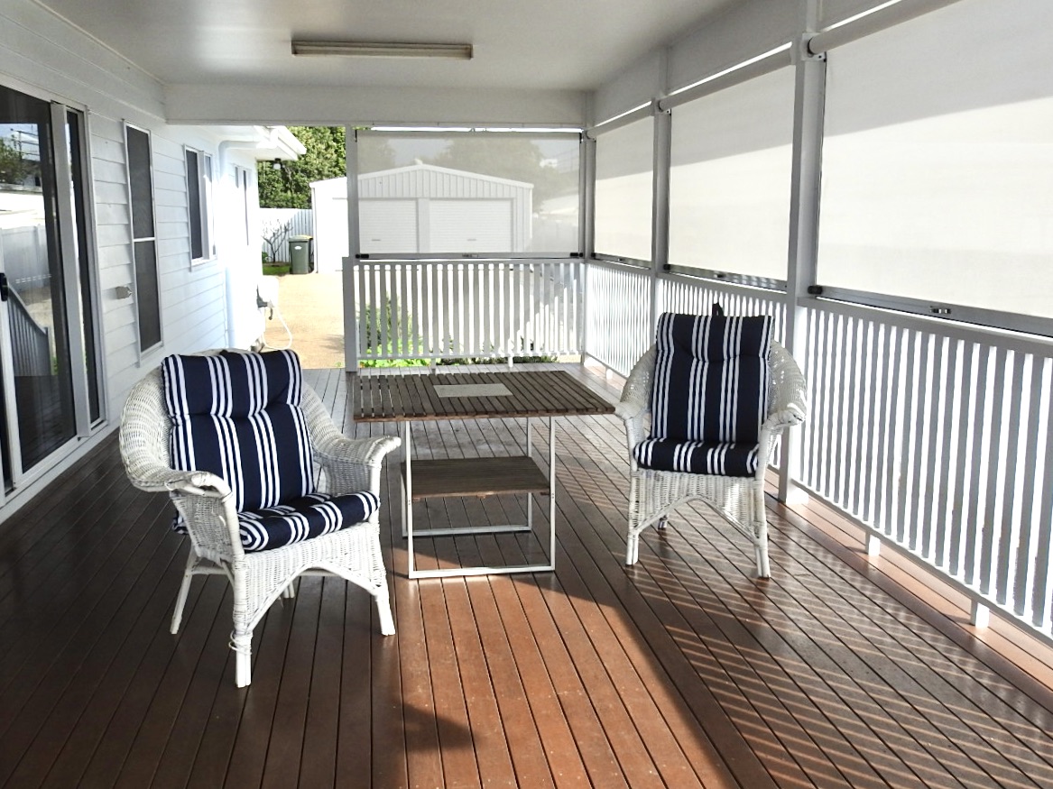 You'll find the deck is protected from the cooler south easterlies and more chilly south westerlies in winter and open to the cooling northerlies in the summer. Privacy, shade and wind protection are ensured with outdoor roll down blinds.