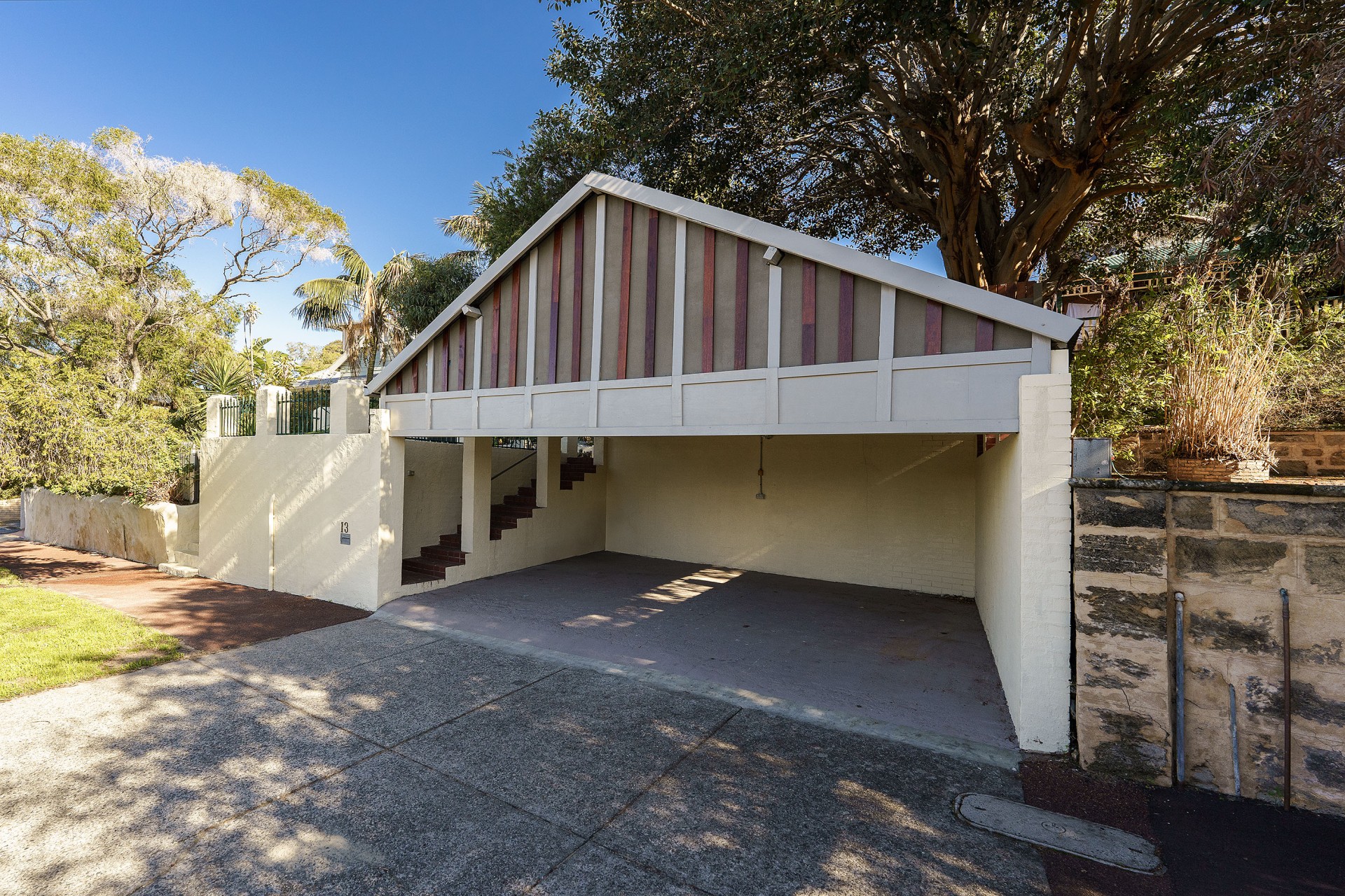 13 Preston Point Rd sits on an elevated 480sqm block set into a limestone hill with spectacular views from the paved sitting area at the top of the property.
