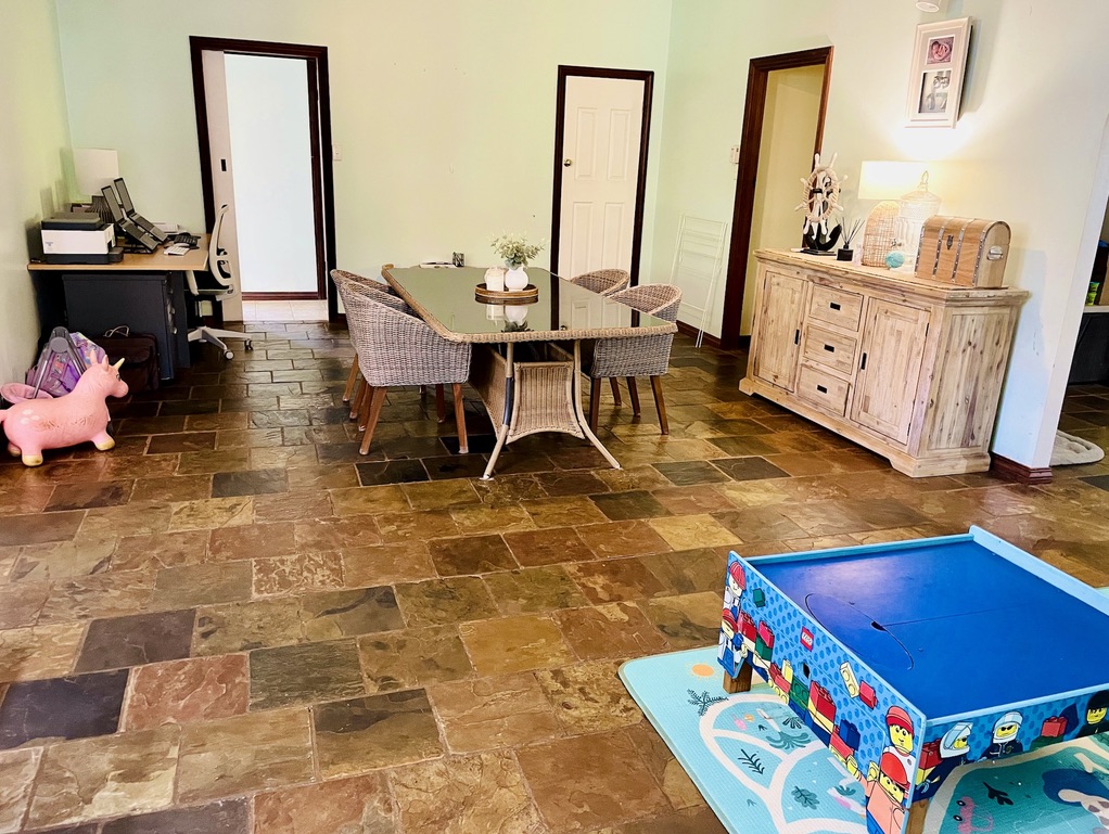 Each room has split-system airconditioning and ceiling fans. Floors in the living areas are slate - easily maintained, timeless and cool - and bedrooms and bathroom are all tiled. The private pool and outdoor entertaining area is located at the rear of the house. Shady verandahs extend the outdoor living space.