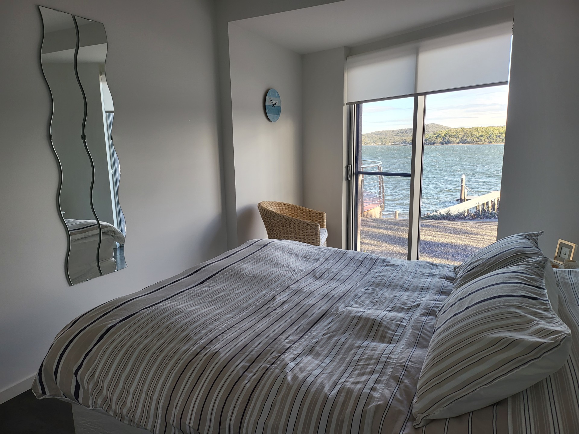 Built in 2006, this architecturally designed home still exhibits modern private waterfront living with its almost private bay. Its Pontoon and swing Mooring accommodated a 55 foot Cruiser. The boat shed houses all the water toys including tenders, canoes, Jet boat and jet Ski etc. The waterway leads to restaurants and entertainment in Nelson Bay, Soldiers Point and the fresh waters up the Myall River to the Myall Lake and Forest for peaceful boating.