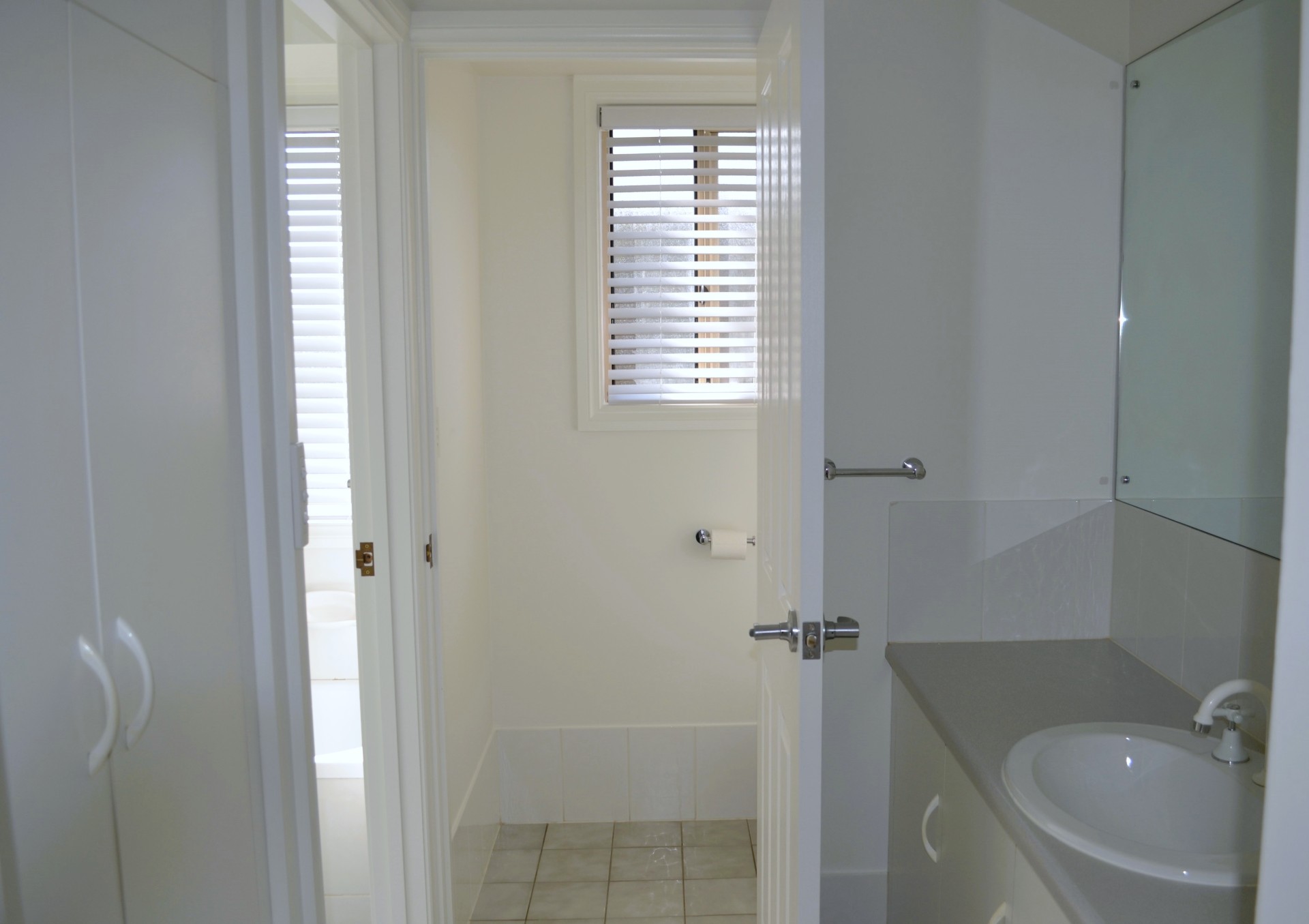 - Main bathroom including shower, bath and separate vanity and toilet.