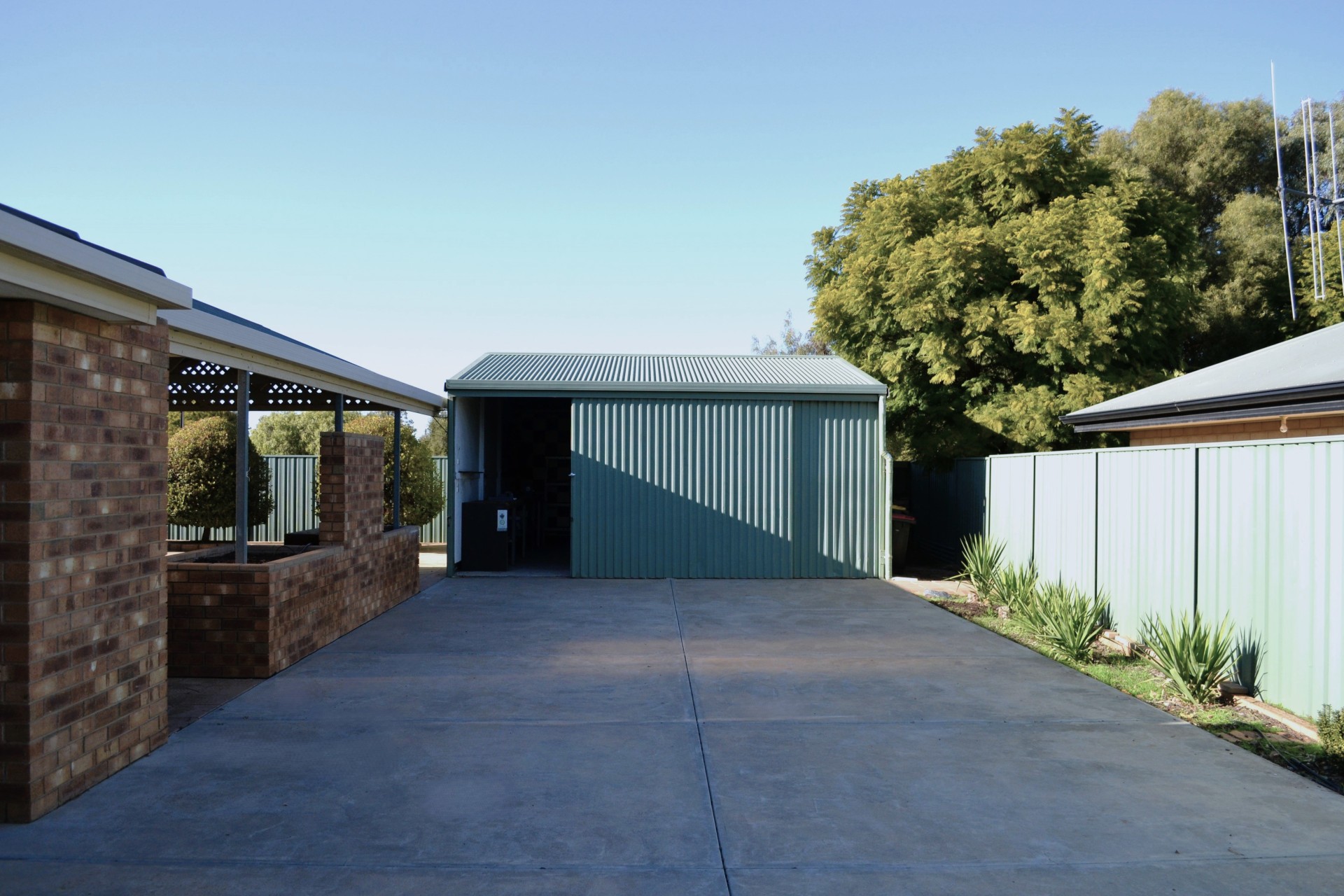 - A large 7m x 6m shed, with power, concrete flooring and ample space for projects or boat/caravan storage.
