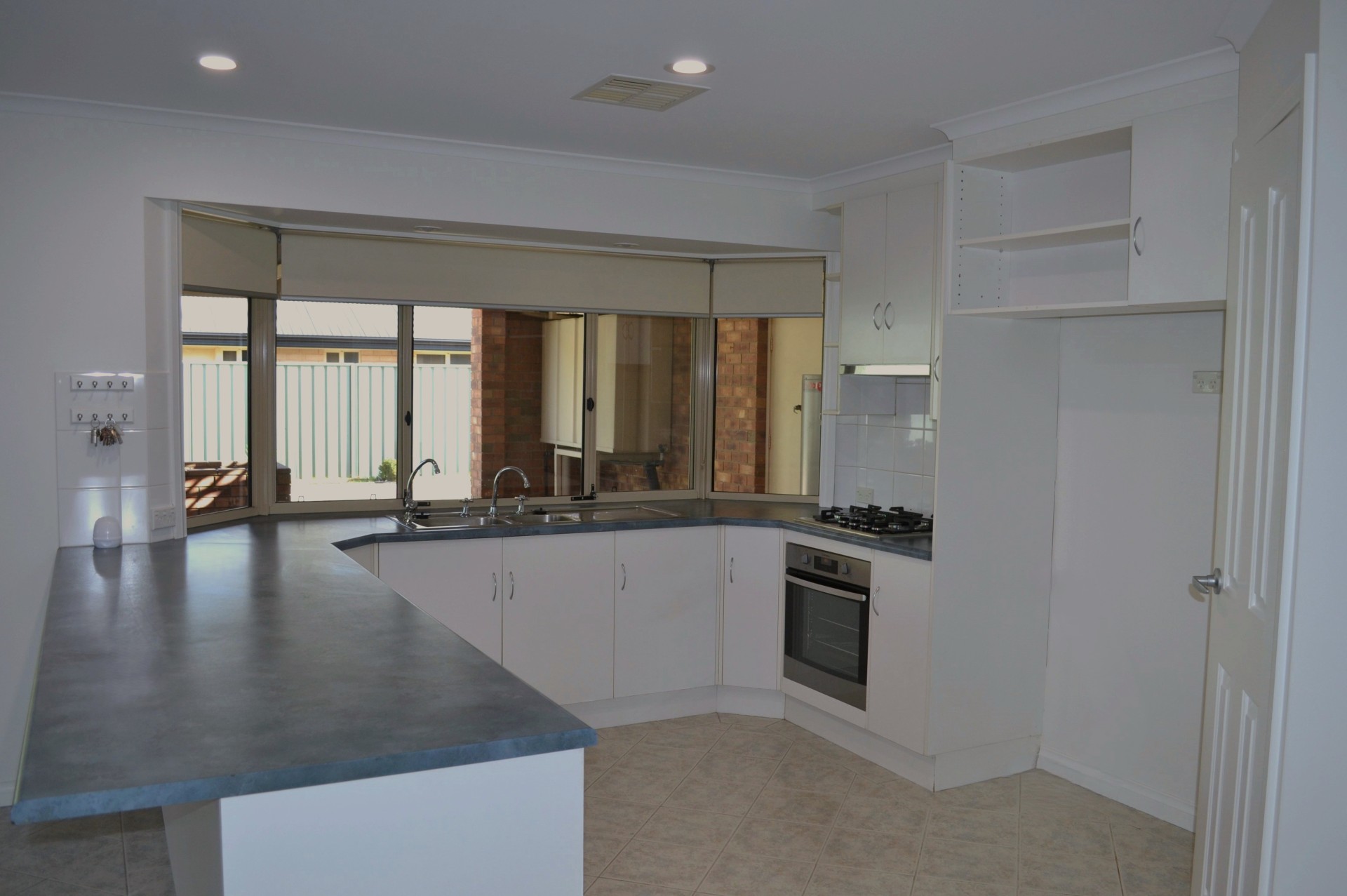 - Laundry with built in cupboards and external access.