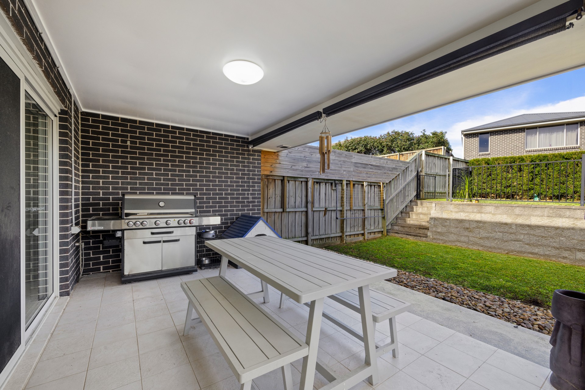 The open-plan living area is the heart of the home, seamlessly connecting the kitchen, dining, and lounge area. The contemporary kitchen is a chef's dream, equipped with high-quality appliances and plenty of storage space. The living area opens up to a private outdoor entertaining area, perfect for hosting family gatherings or enjoying a quiet evening.