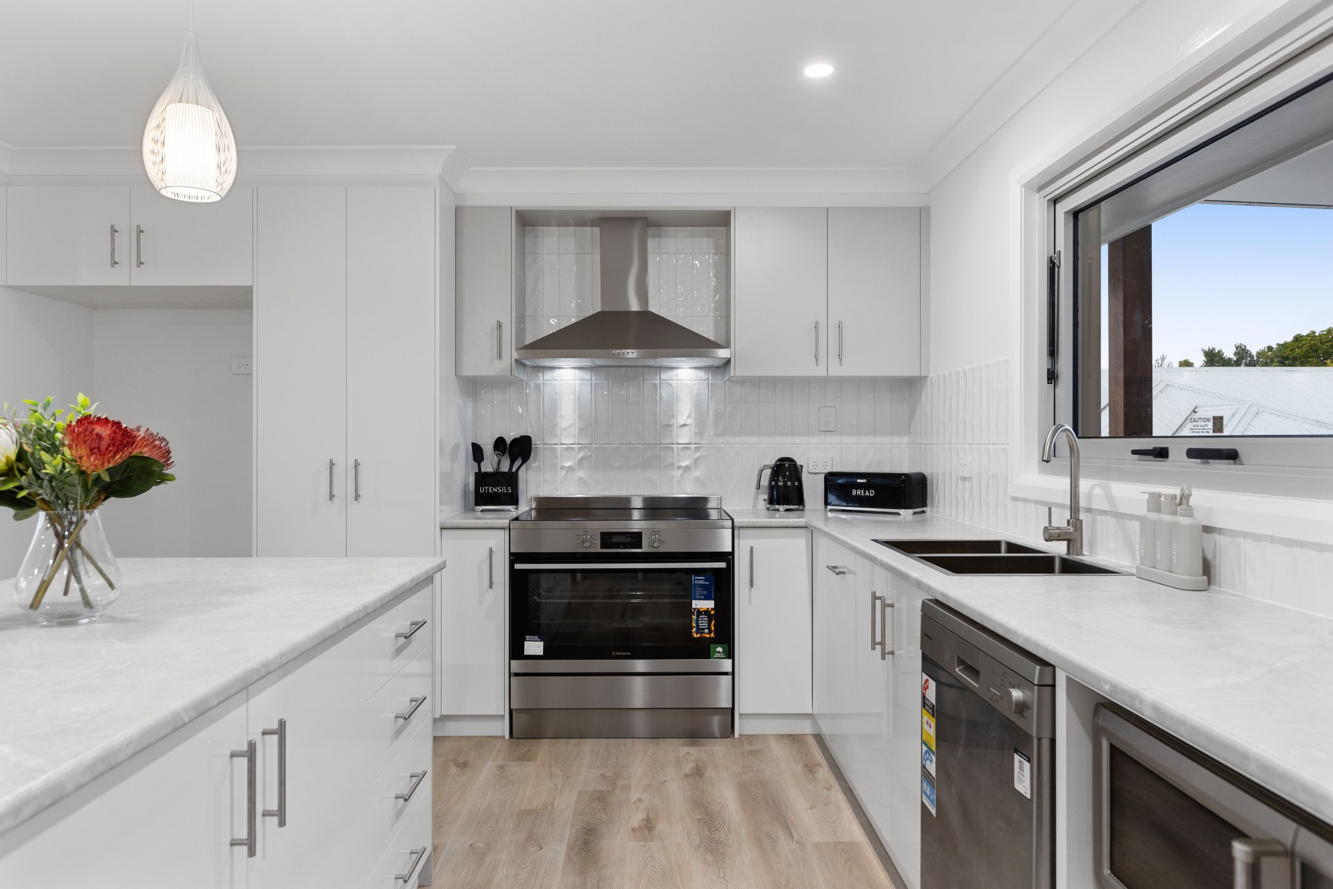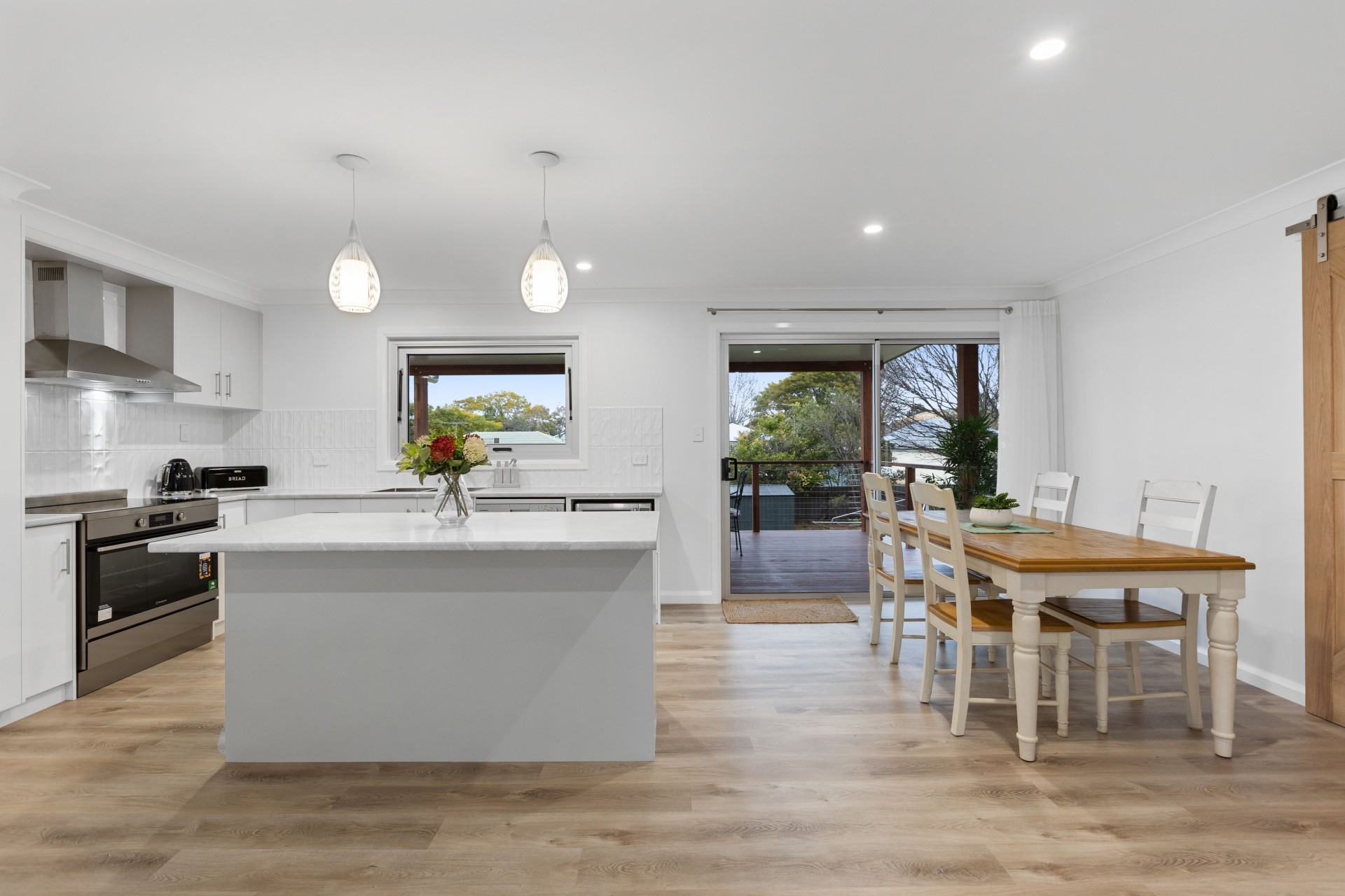 Starting upstairs this home boasts 4 well sized bedrooms that all have built in wardrobes. The main bedroom also includes an ensuite with shower, toilet and double vanity. Generous living area that joins with kitchen and dining. Large glass sliding doors in living room that open to the front deck. Large back deck flows off the dining area as you step through glass sliding doors. Kitchen includes island bench, extra-large oven and serving window out to the deck. Spacious family bathroom is located on the top floor which includes bath, shower and double vanity.
