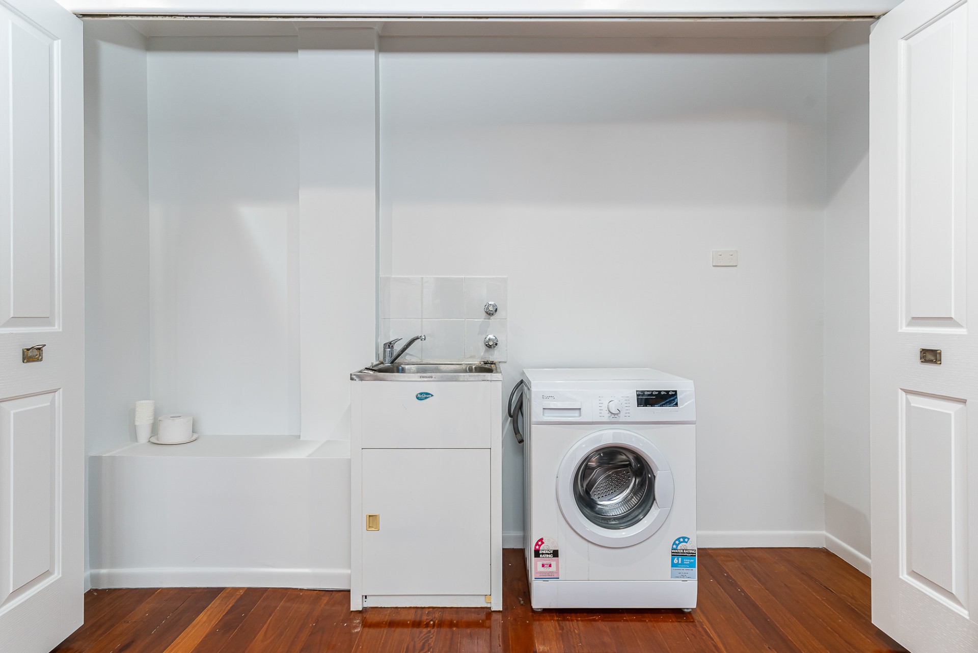 Leading out to the backyard is a large covered utility space that currently houses the laundry. The fully fenced pet-friendly backyard is pretty as a picture with a paved courtyard, high fencing and mature trees providing complete privacy. The fruit trees and vegetable patch are productive and easy to maintain. Fed by a rainwater tank this garden offers self-sufficient water supply.