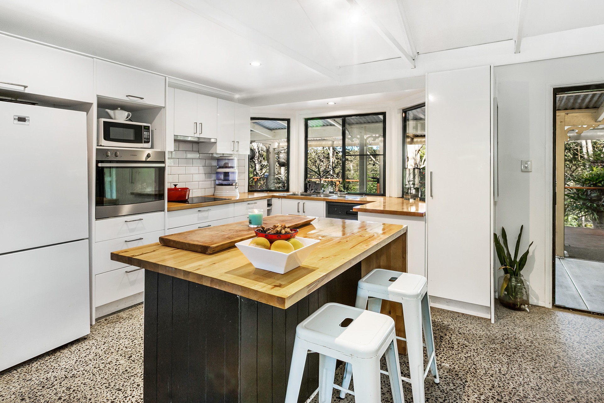 This very stylishly renovated home sits at the top of a narrow acre of land, there is a small dam and plenty of room to expand.