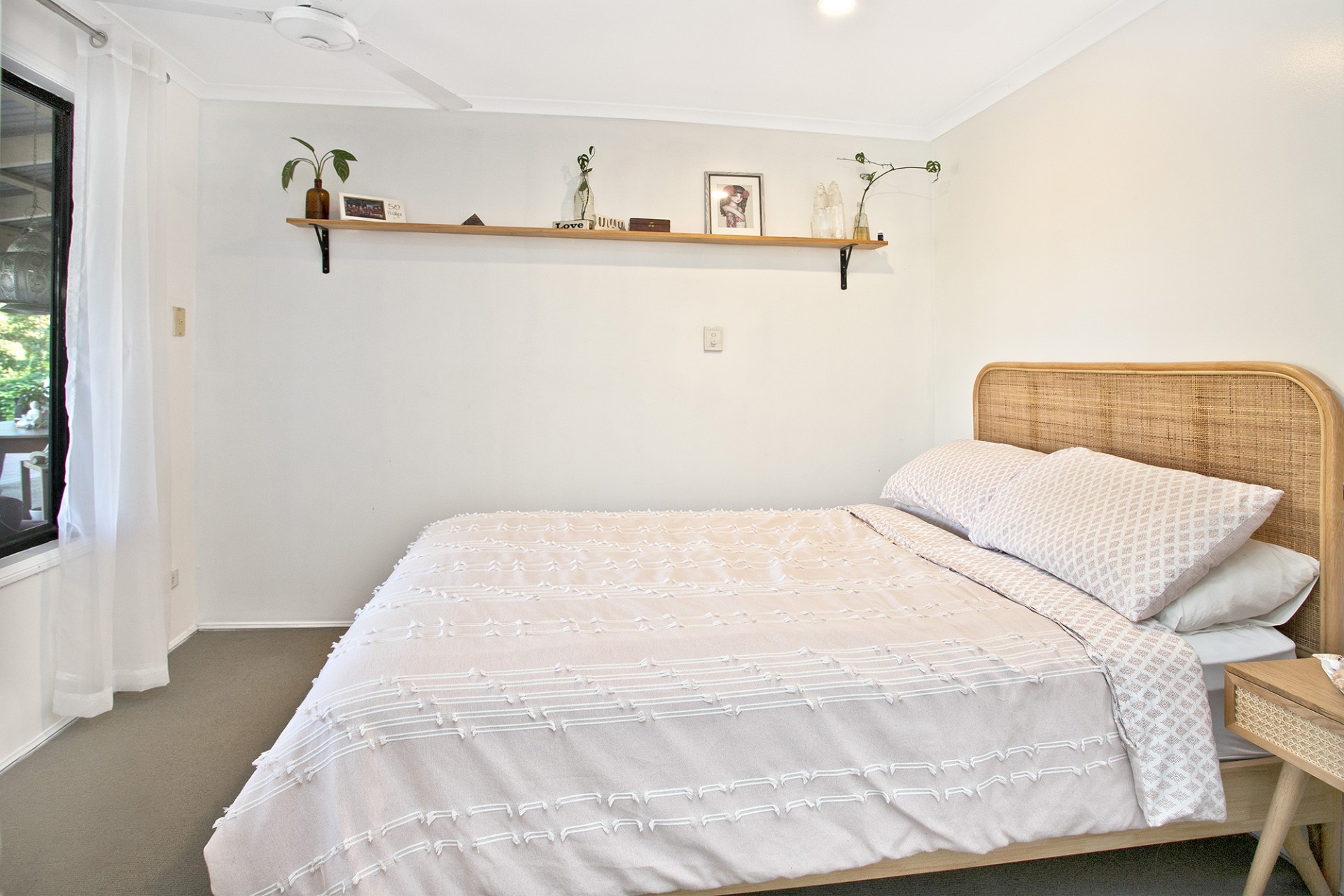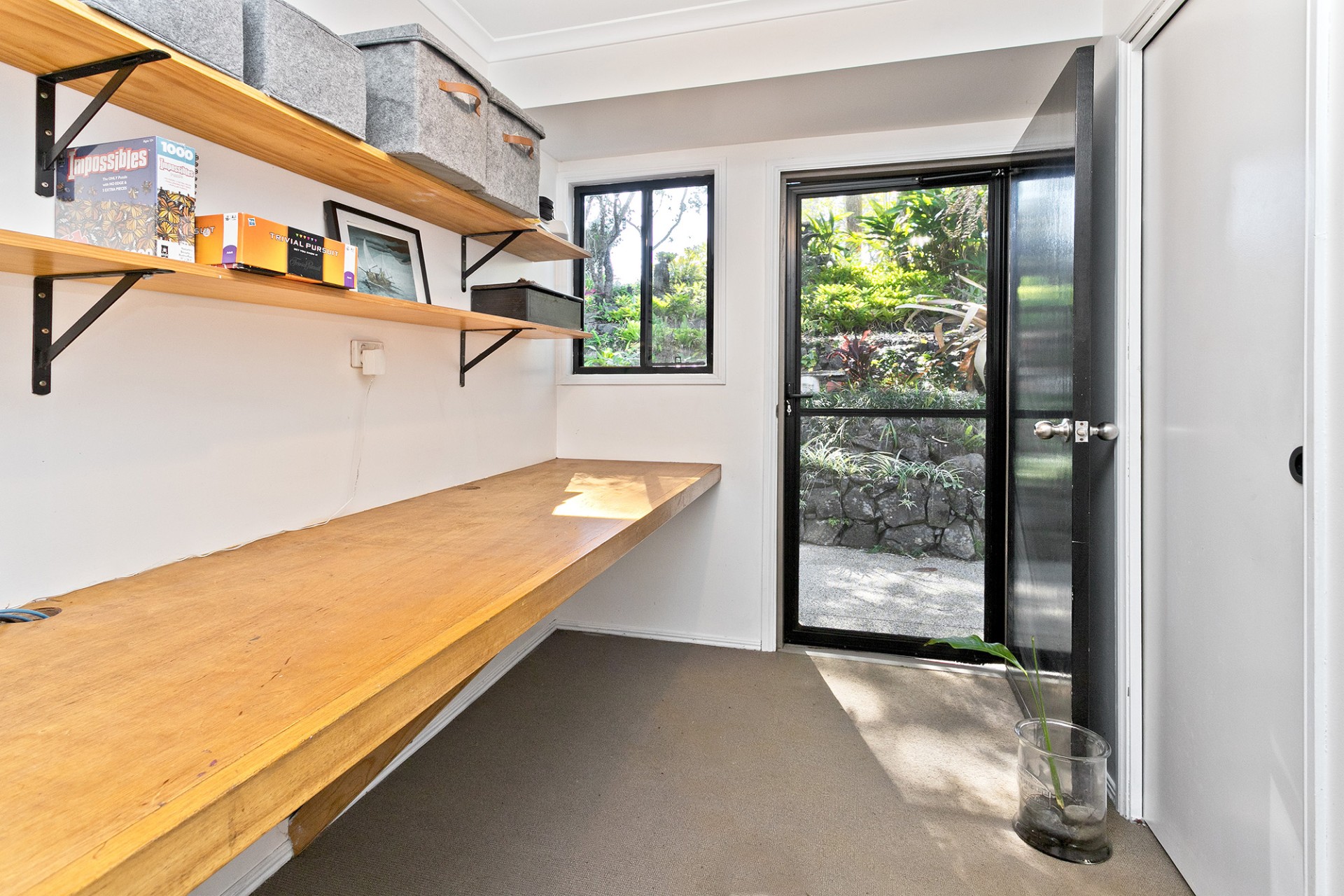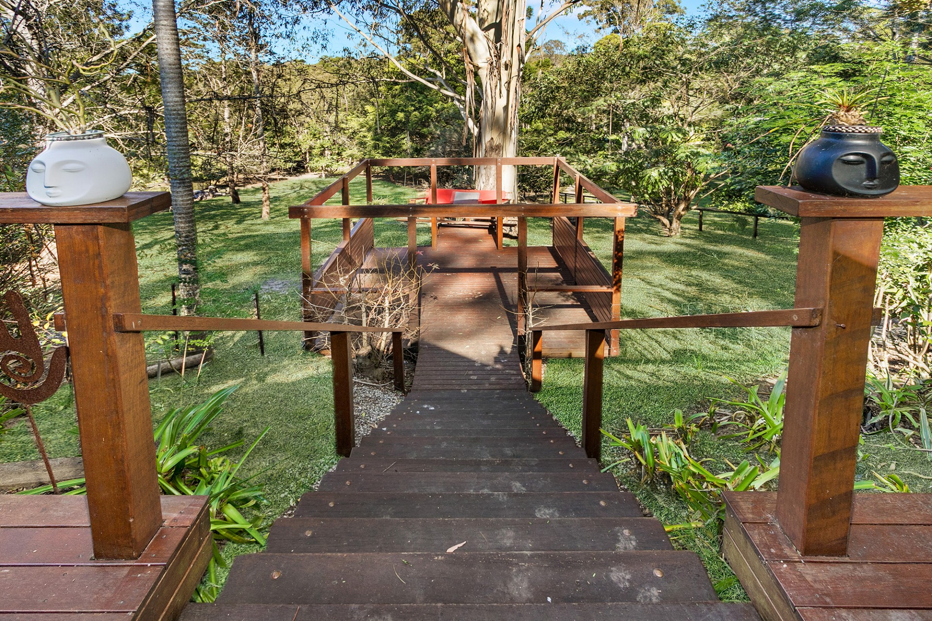 The home is set back from the road following the gentle slope of your block. Your terraced front garden is filled with beautiful native and tropical plants, and provides complete privacy from the road.