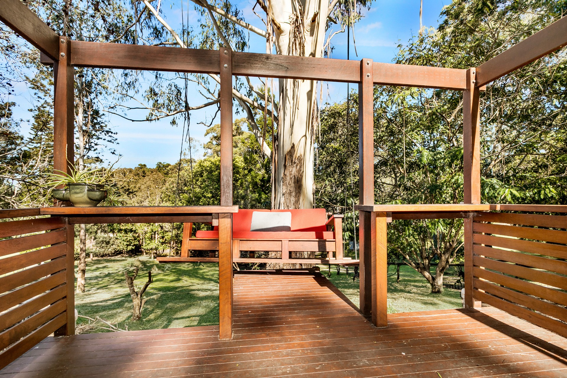 The garden is full of wildlife, and nature is very much a part of this little paradise, there is a full length deck along the back of the house to sit and appreciate nature at its most lovely amongst the trees. Or if you really want to be immersed how about enjoying your morning coffee swinging on your very own custom made tree swing. This is where you will find the morning sun.