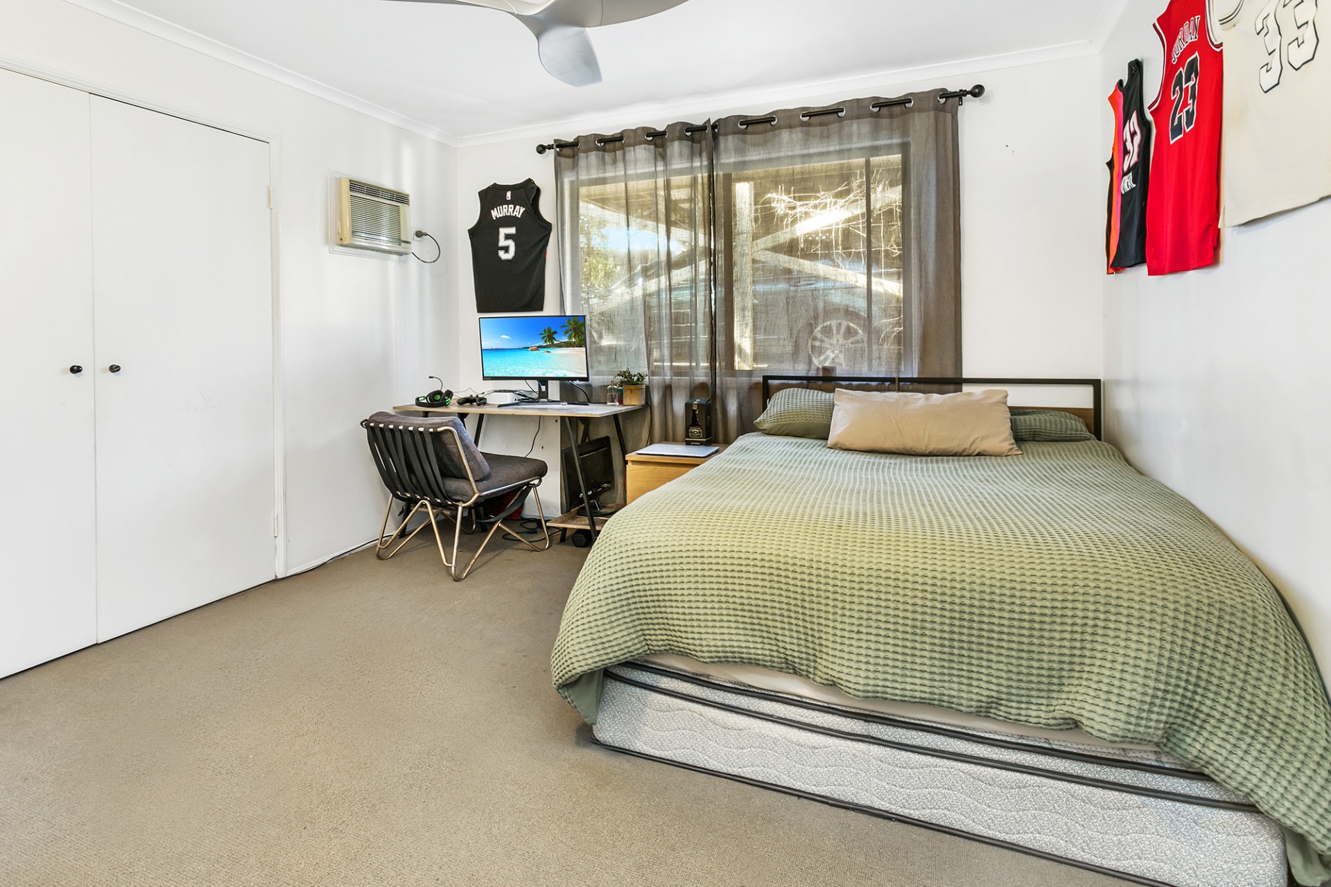 There are 3 bedrooms in the home, 1 of the bedrooms has built in wardrobes, the other large bedroom features a gorgeous bay window and the 3rd and smaller bedroom has a large window to admire the magnificent Gum tree that highlights the property.