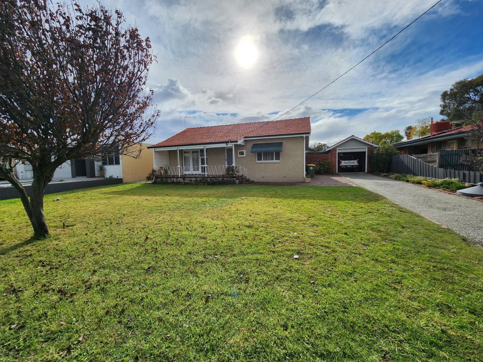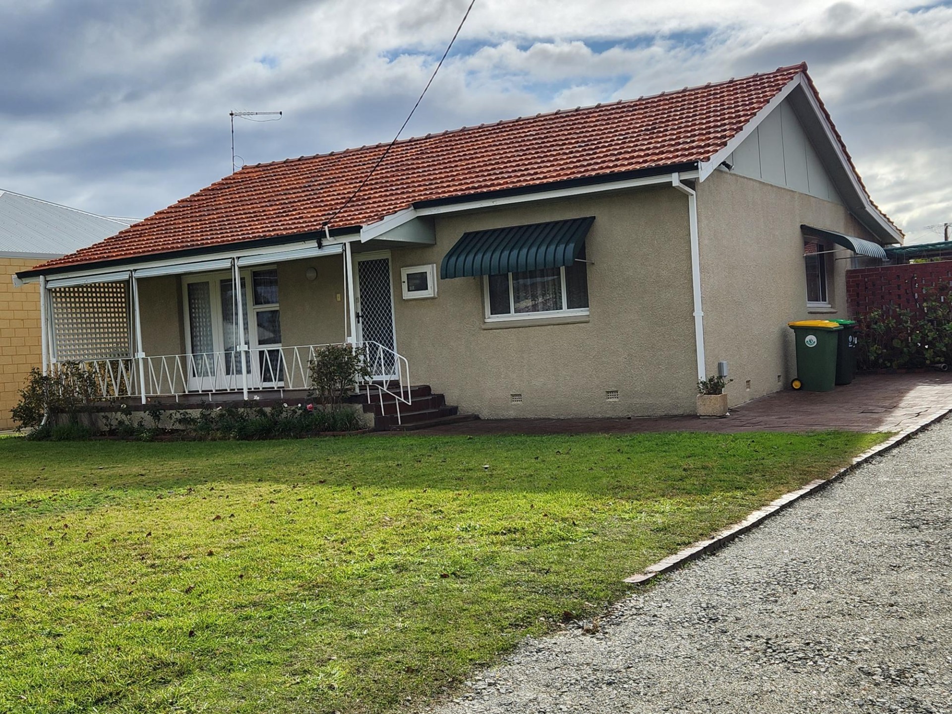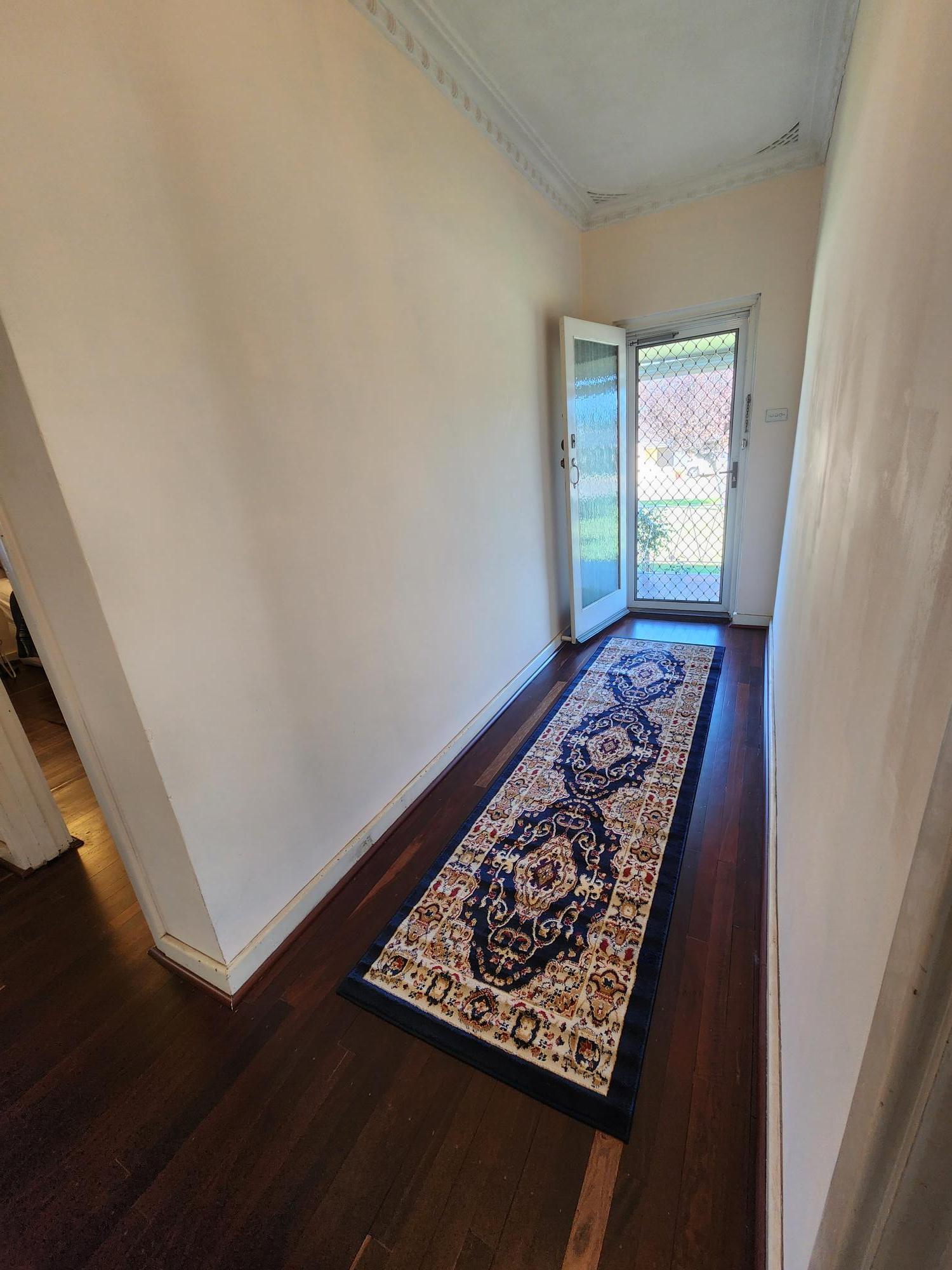 The house is brick and tile construction with polished jarrah floors and high ceilings and is of very solid construction. It has two large bedrooms and a smaller sleep out bedroom or study. 1 bathroom which has a toilet and there is another separate toilet.