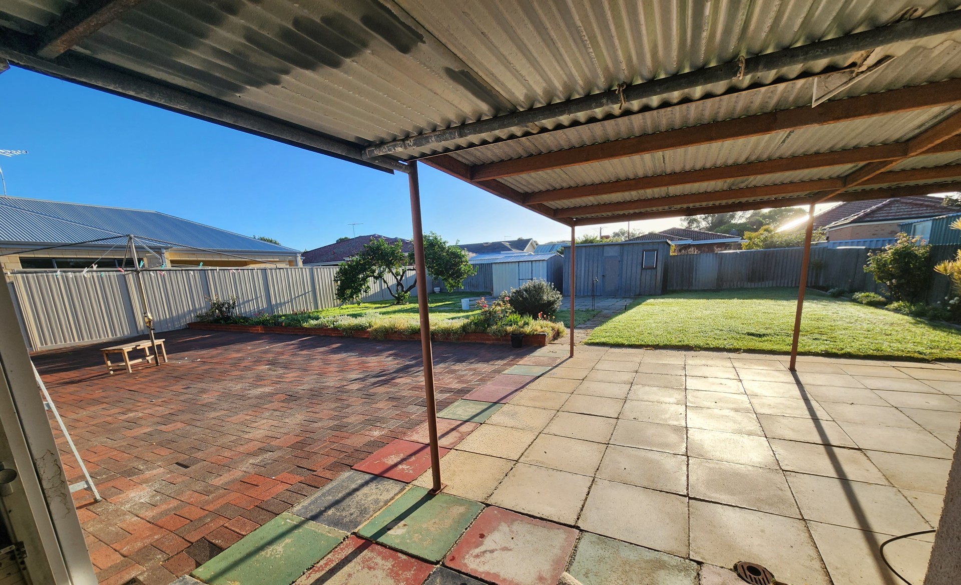 The kitchen is spacious, with plenty of built in cupboard space and it is all very functional. There is a large sunroom with bar area, which leads to the huge backyard. There are 2 garden sheds and a large lemon tree. The property has a single lockup garage with roller door and there is plenty of additional space for parking more vehicles