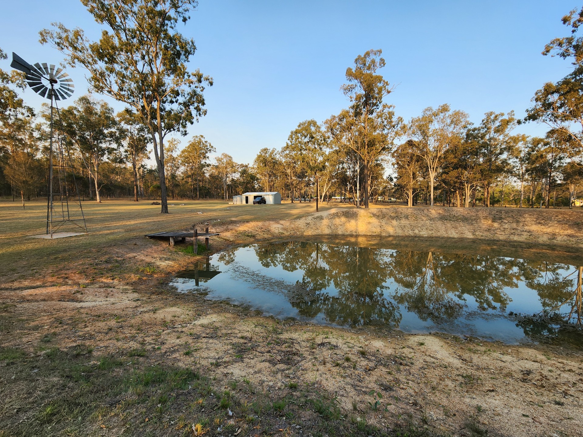 A family of local kangaroos frequent the block and have been seen swimming in the dam in hot weather. Ducks have raised a clutch of ducklings and they enjoy the pontoon also.