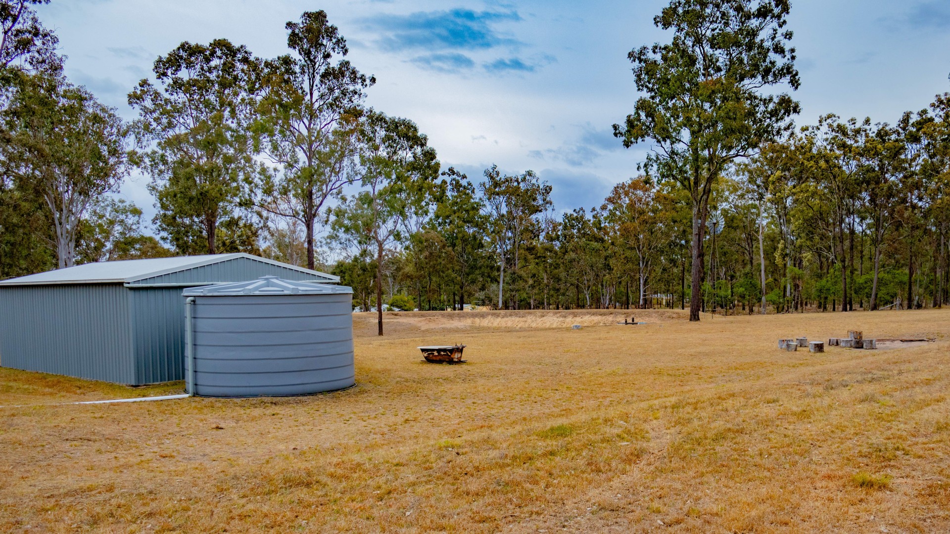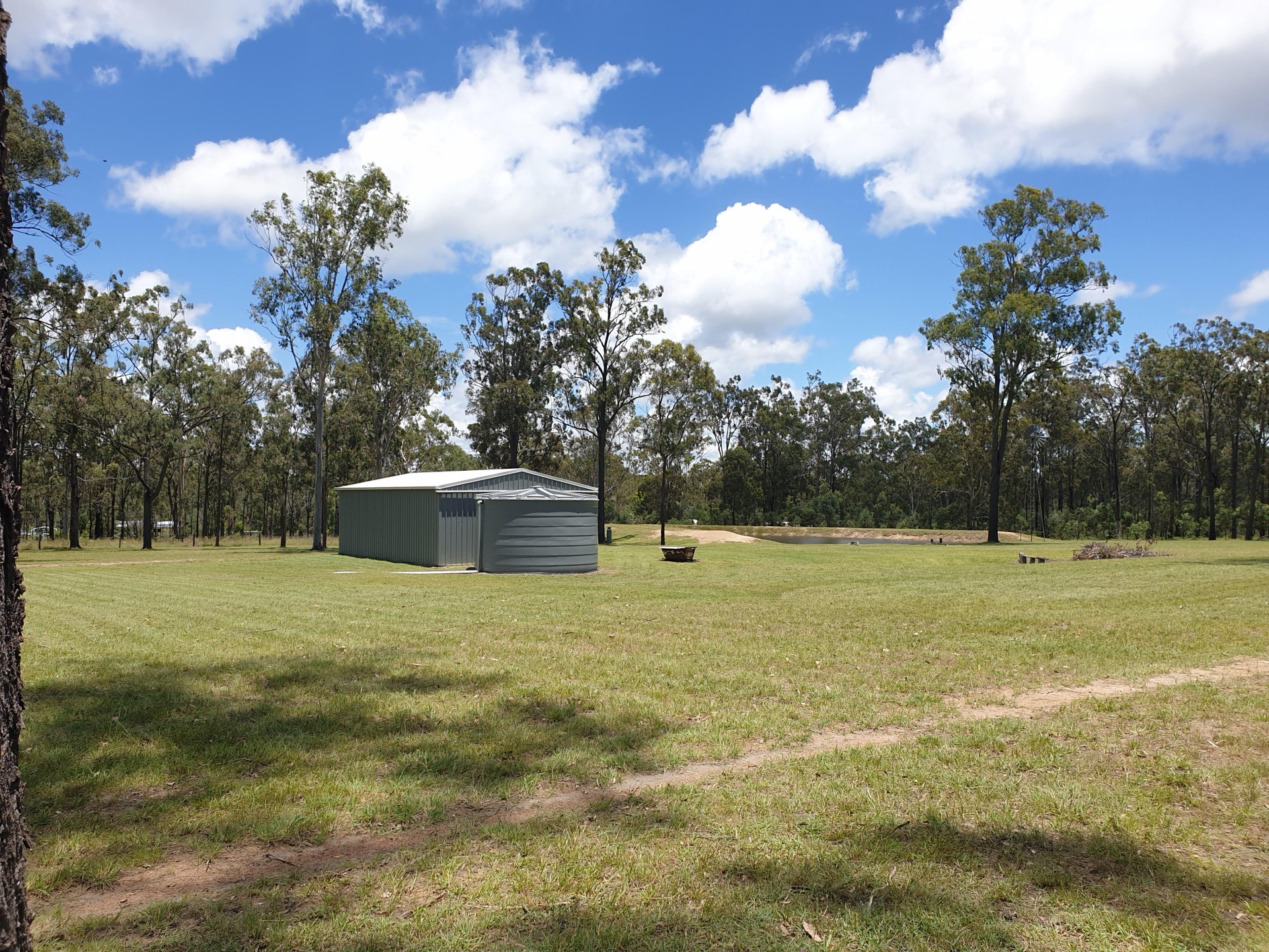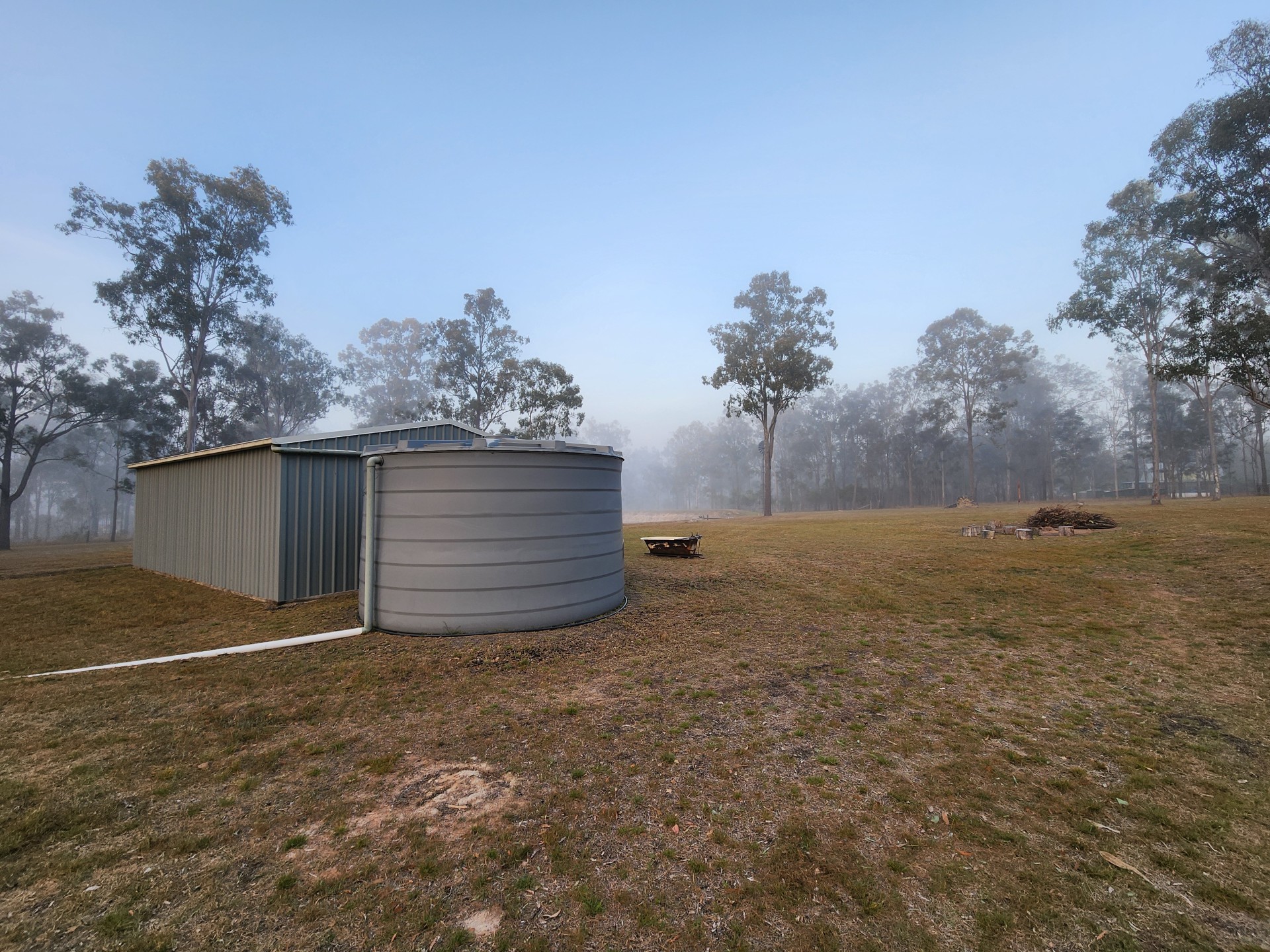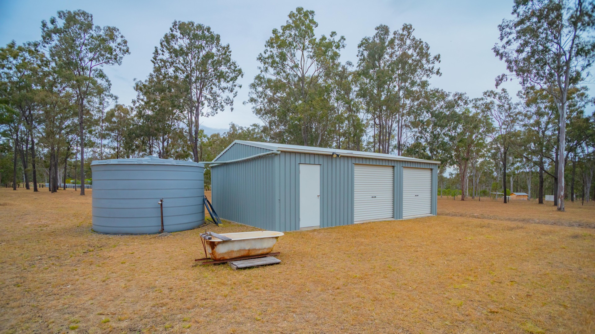 A 22,000 litre water tank is connected to a 3 bay 6mx9m shed.