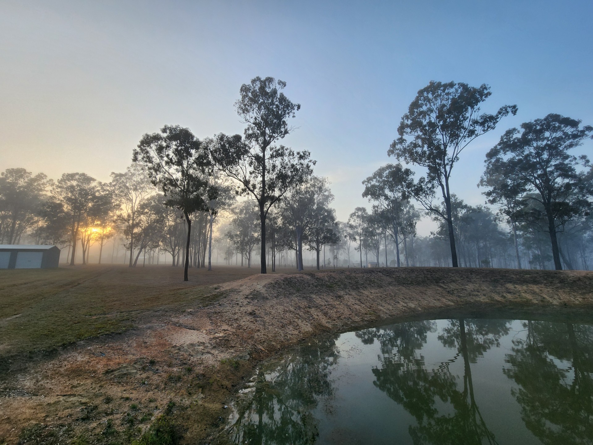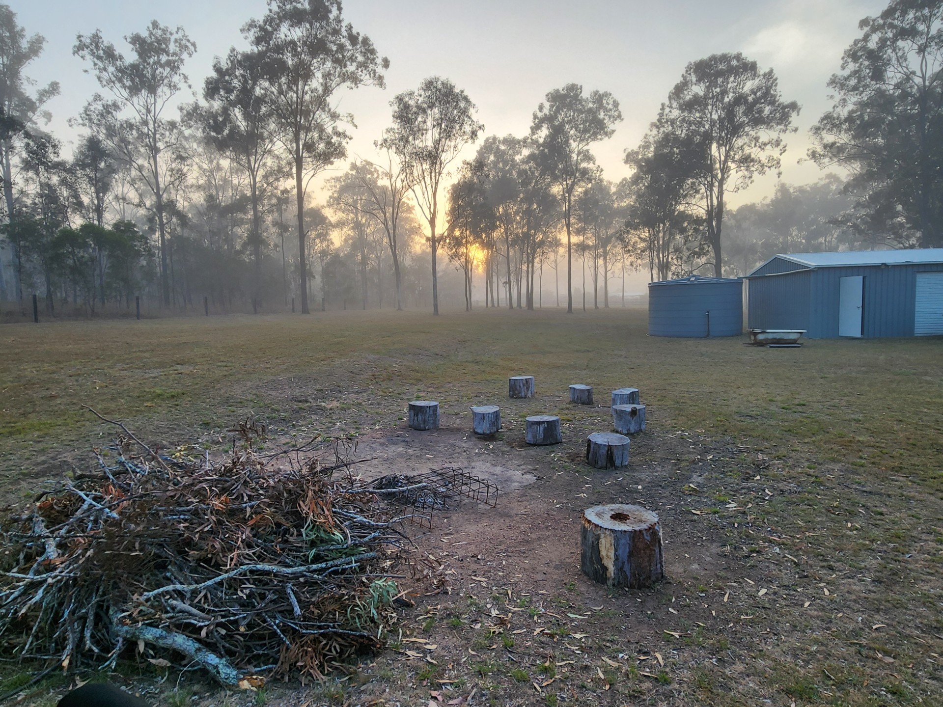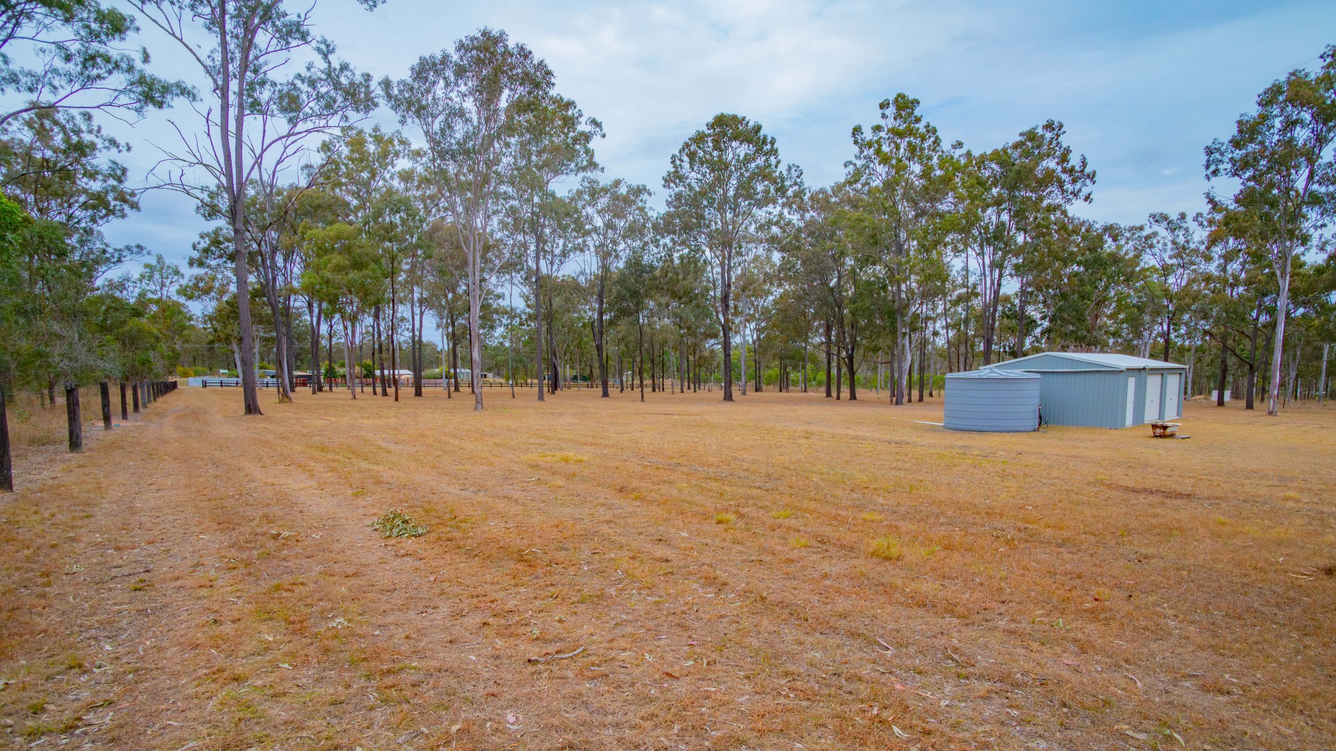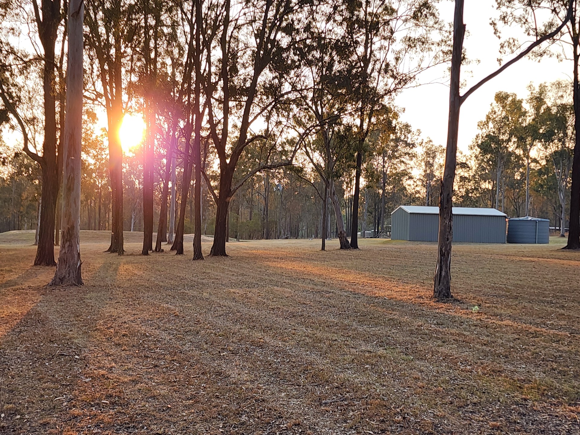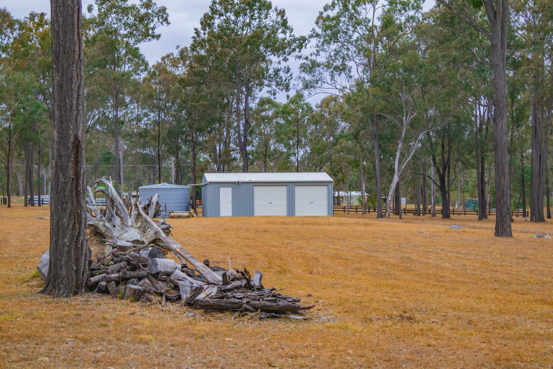 A 22,000 litre water tank is connected to a 3 bay 6mx9m shed.