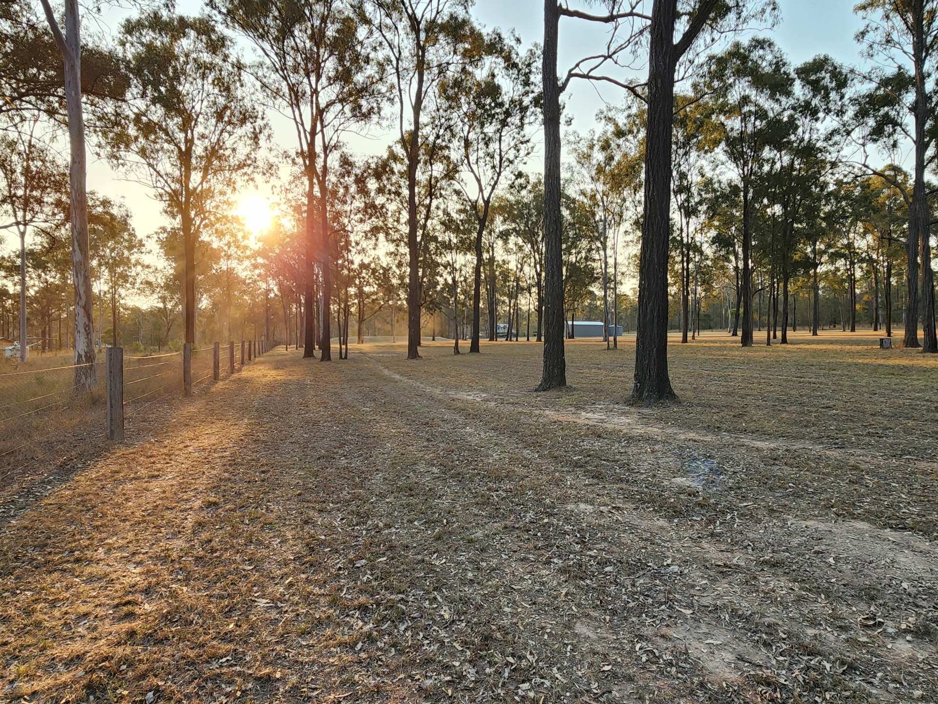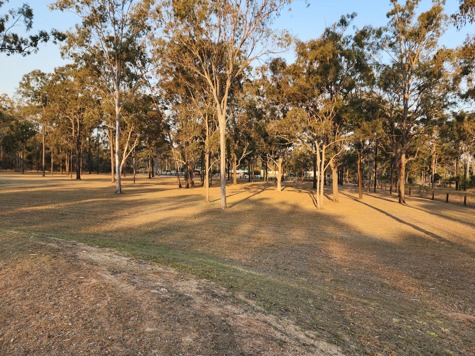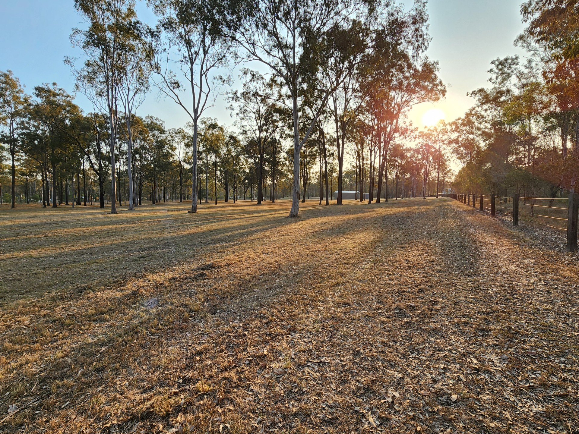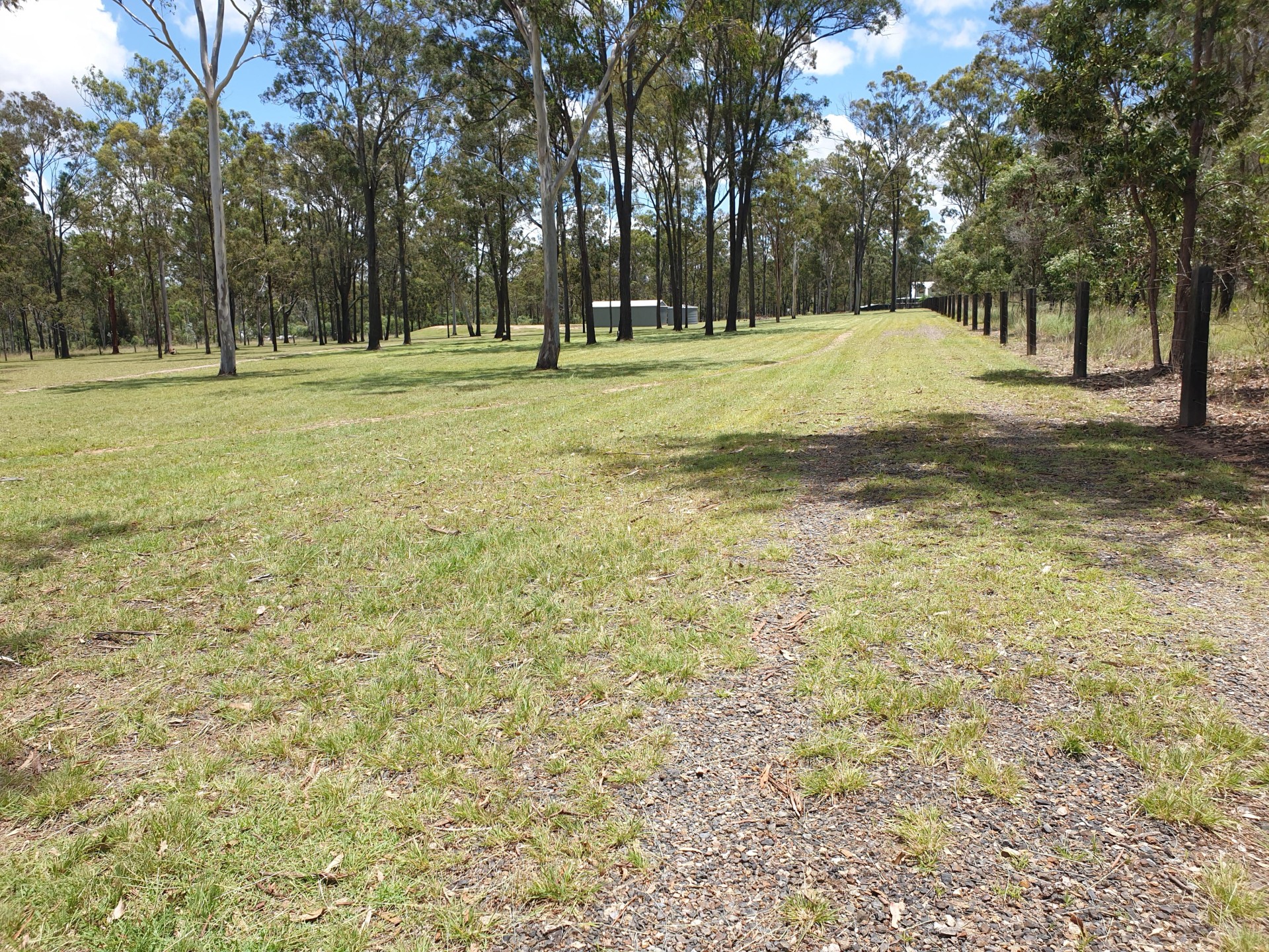 Post and rail fence on the front of the property, road side. The 3 other side boundaries are completed by hardwood posts and 5 strand plain wire.