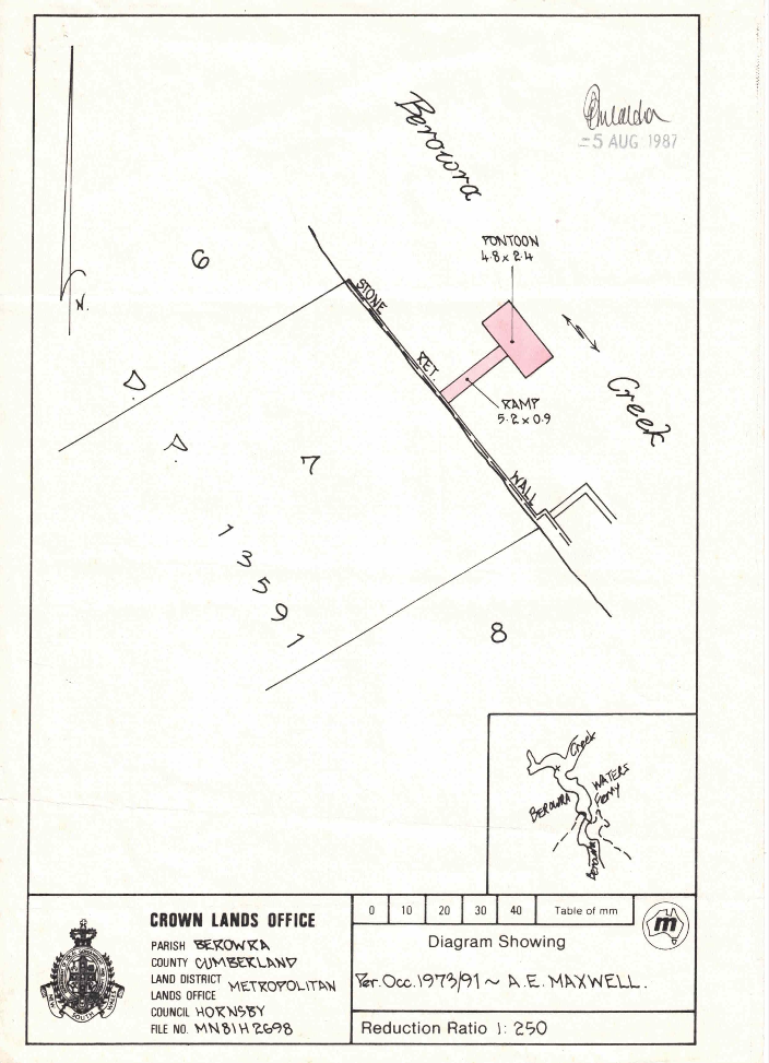 Permissive Occupancy held for a pontoon (4.8 x 2.4) and ramp measuring (5.2 x 0.9)