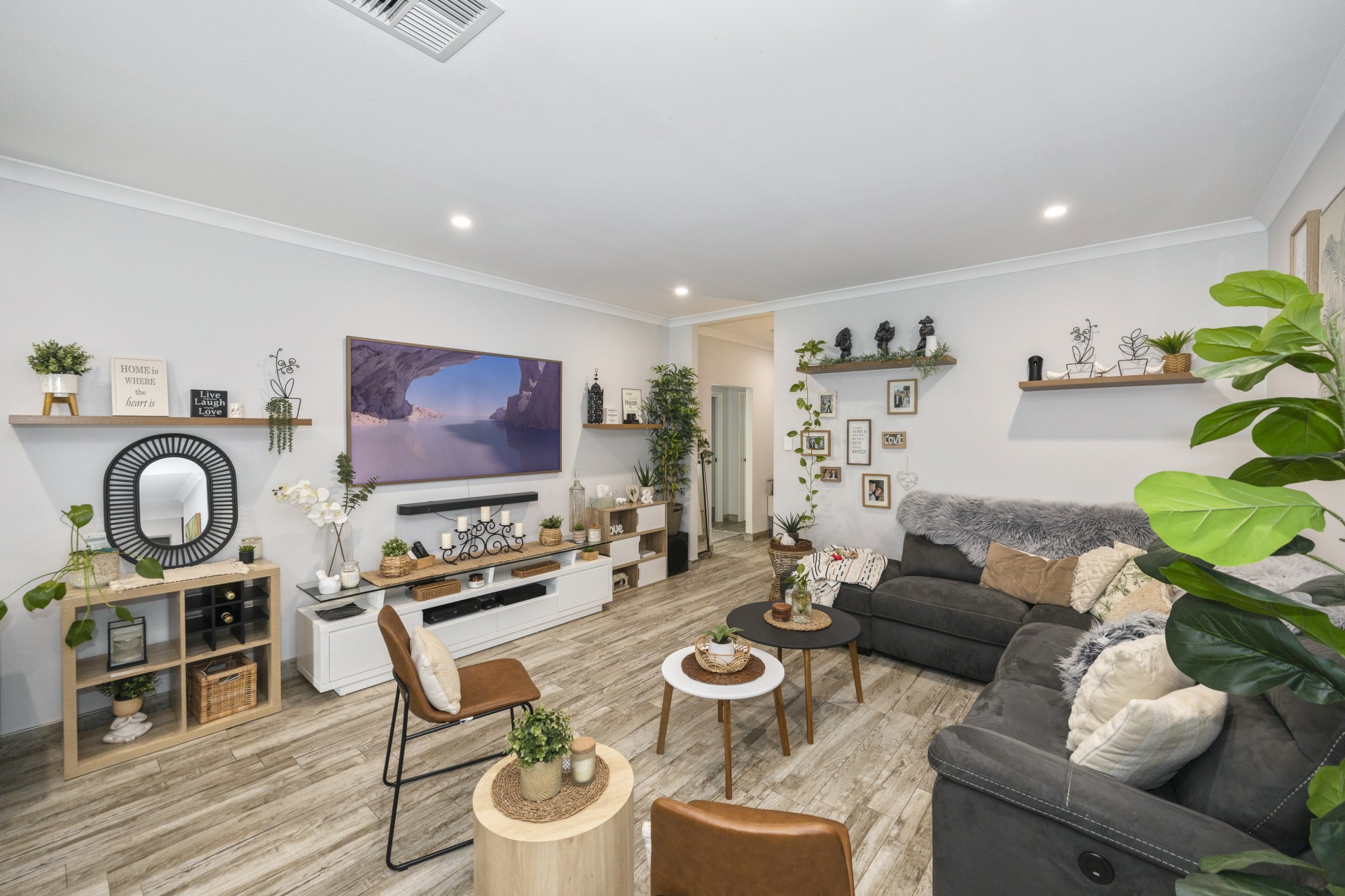 - The living room is open and inviting with lots of natural light and ample room to provide that extra space for a growing family or someone who enjoys plenty of space while still enjoying the cosy ambience. The stunning wooden look tiles throughout the home gives a warm and inviting appearance, but wait that's not all!!! Located in the centre of the room between the dining and living is a log burner fireplace perfect for those cold, rainy winter nights. The ideal space to unwind, relax or perfect for those entertaining days/nights.