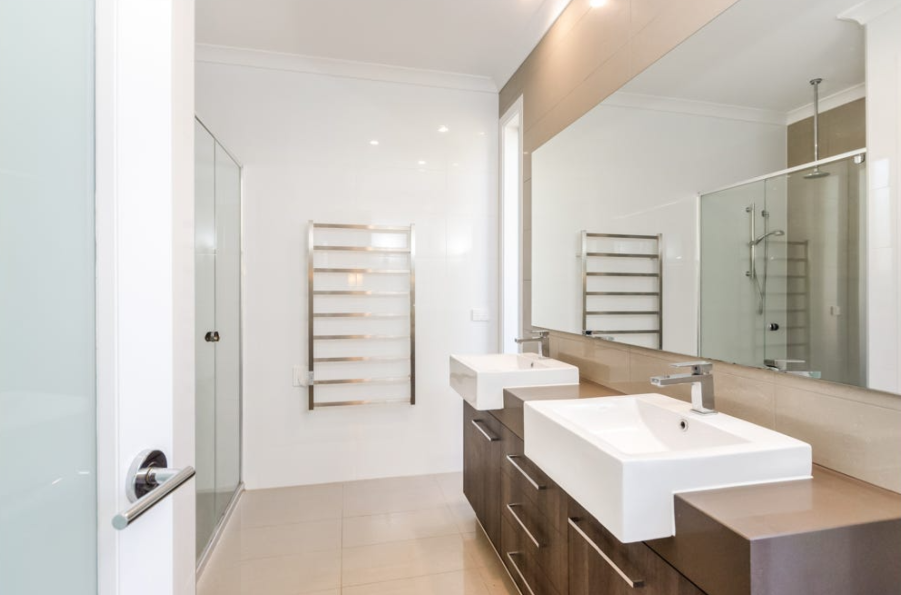 The laundry has plenty of bench space with large skylight and heated towel rails. The two car garage has LED lighting and is airconditioned.