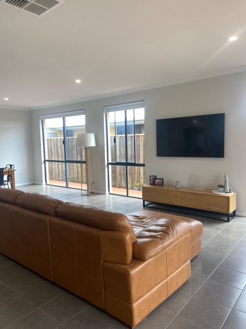 The open-plan living area is bathed in natural light and features elegant downlights, creating a warm and inviting atmosphere. Enjoy year-round comfort with ducted air conditioning throughout the home. The spacious living area seamlessly flows into a large alfresco, perfect for entertaining family and friends.