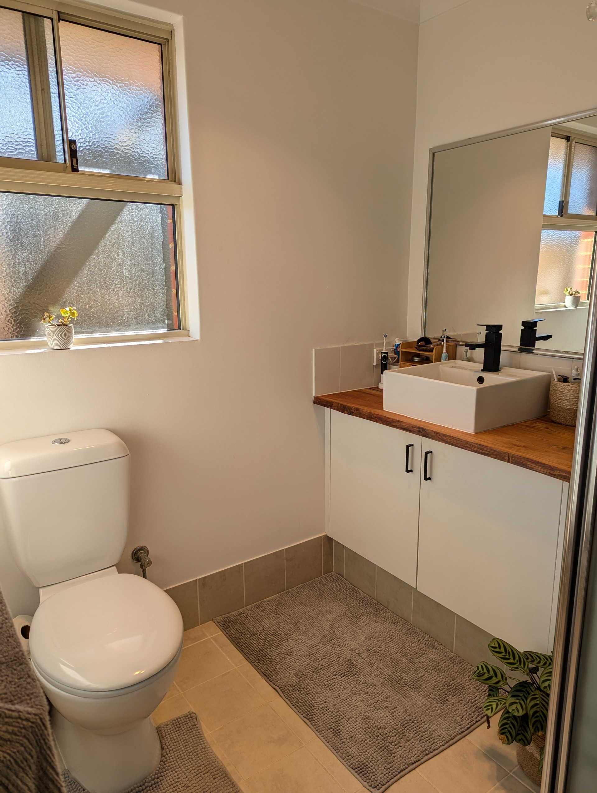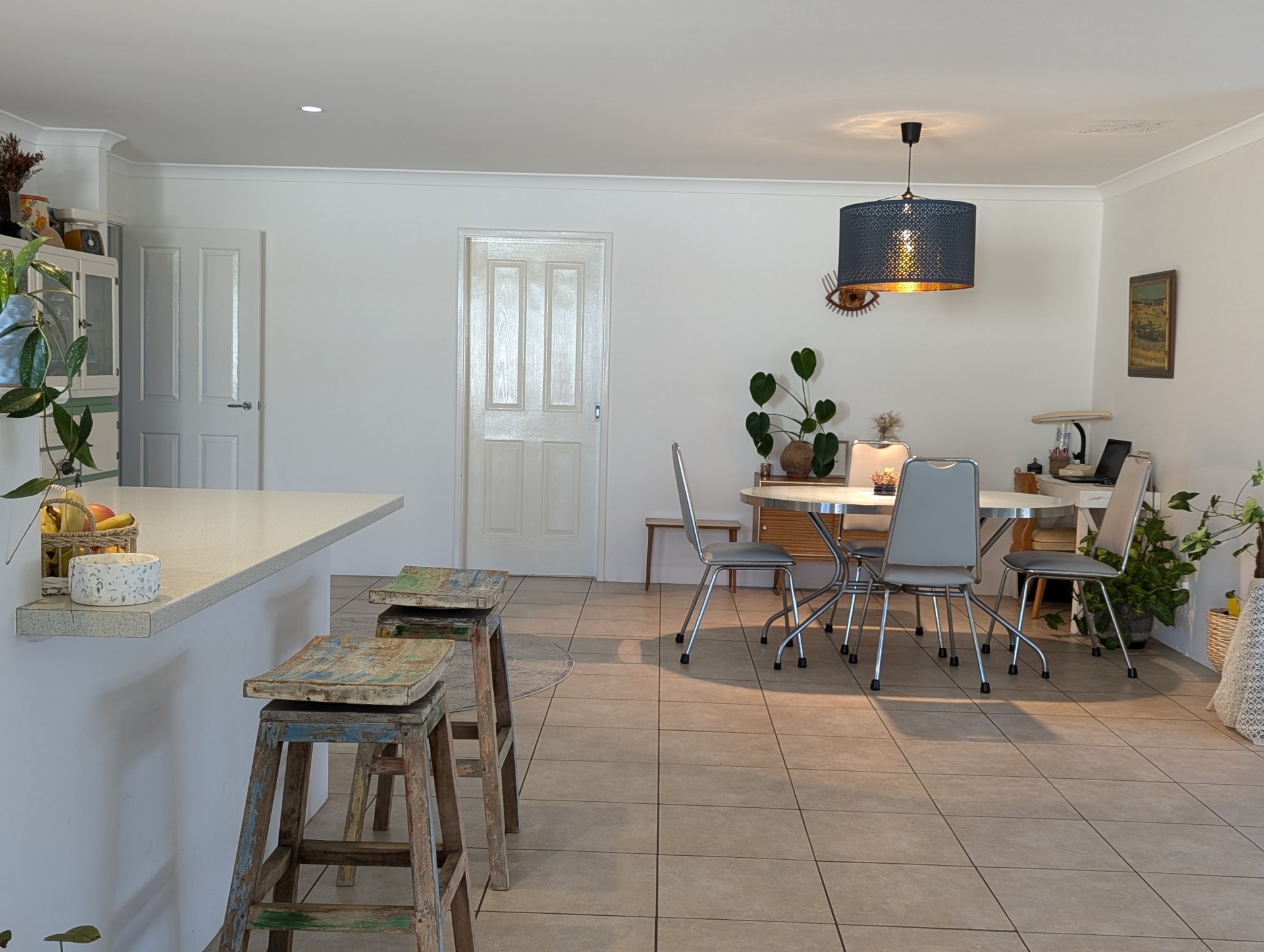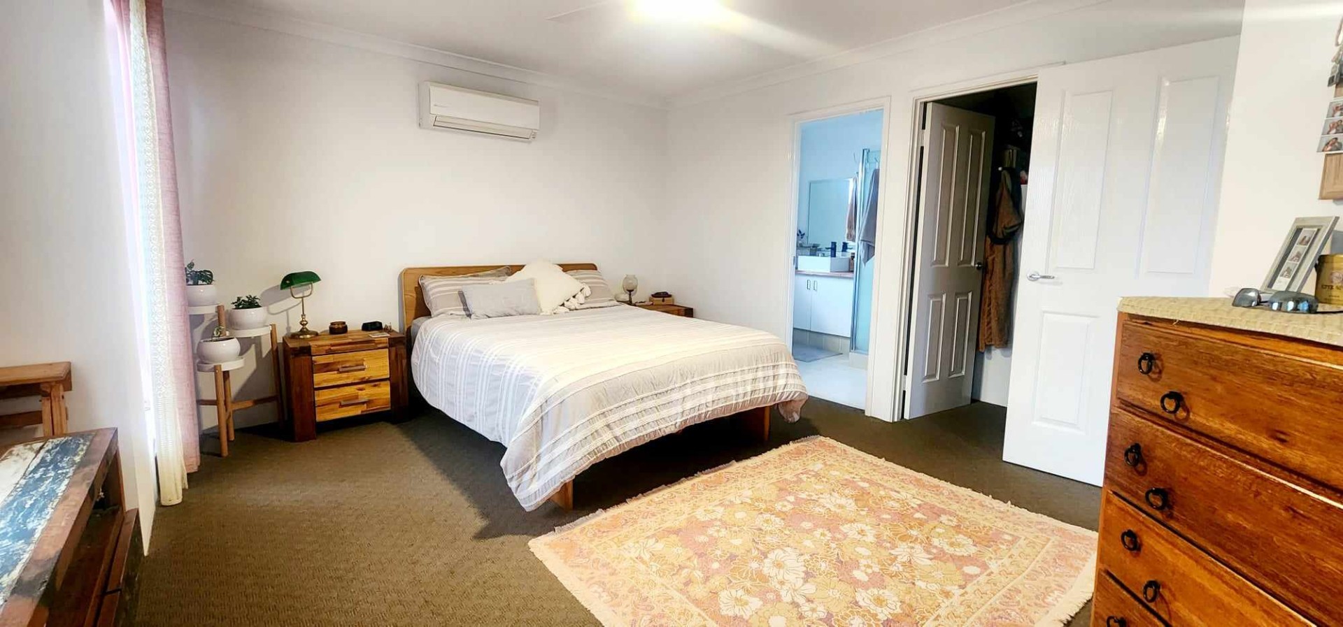 The open-plan kitchen, living, and dining area is set with large windows and 2 sliding entries which flood the space with natural light, creating a warm and inviting atmosphere. This area is air conditioned, has a gas point for a gas heater and all the modern necessities such as dishwasher, electric oven, Italian 900mm gas cooktop and large space for a refrigerator. There is ample bench space, a breakfast bar, large pantry storage space and shopper's access to the garage.