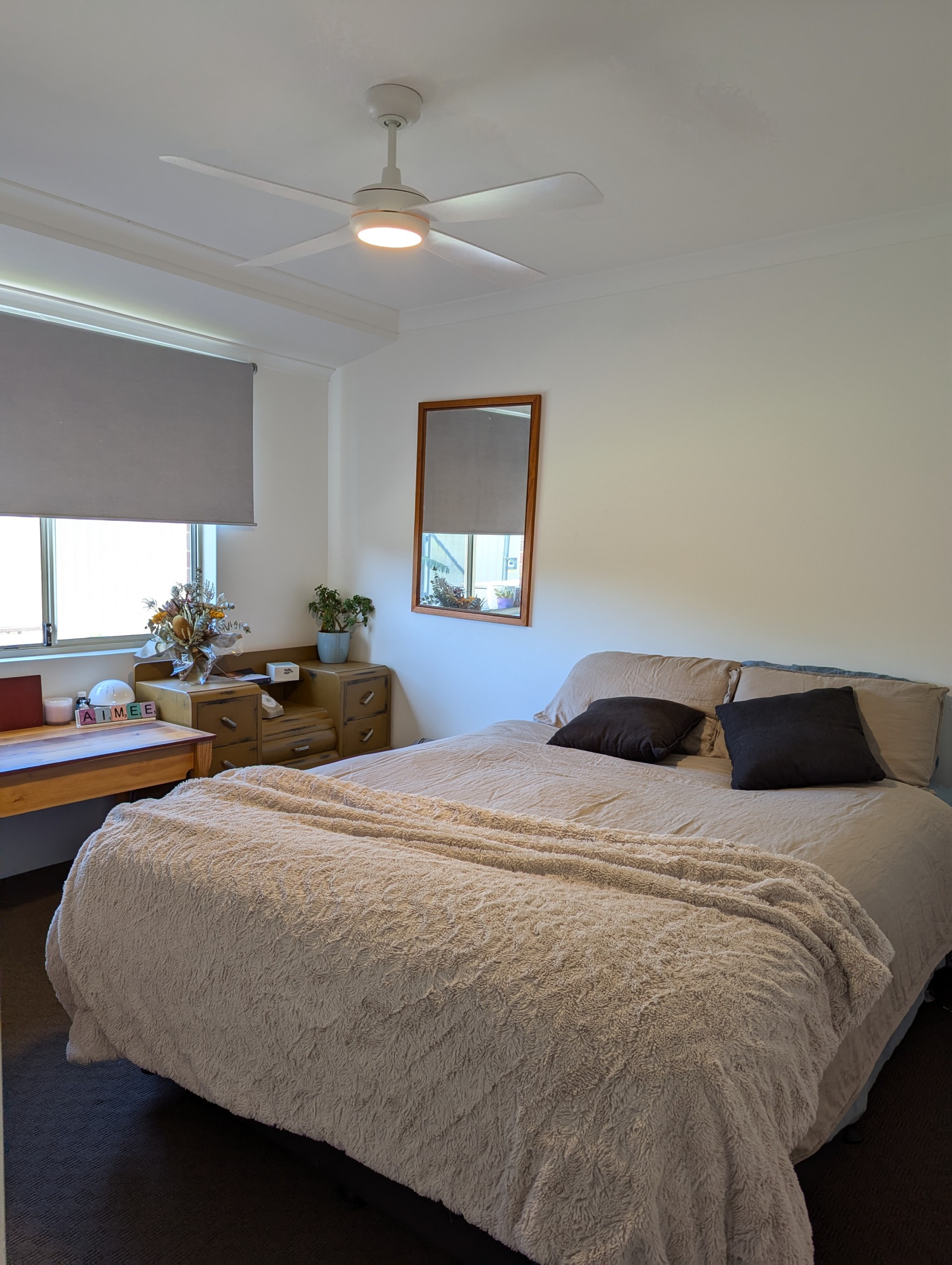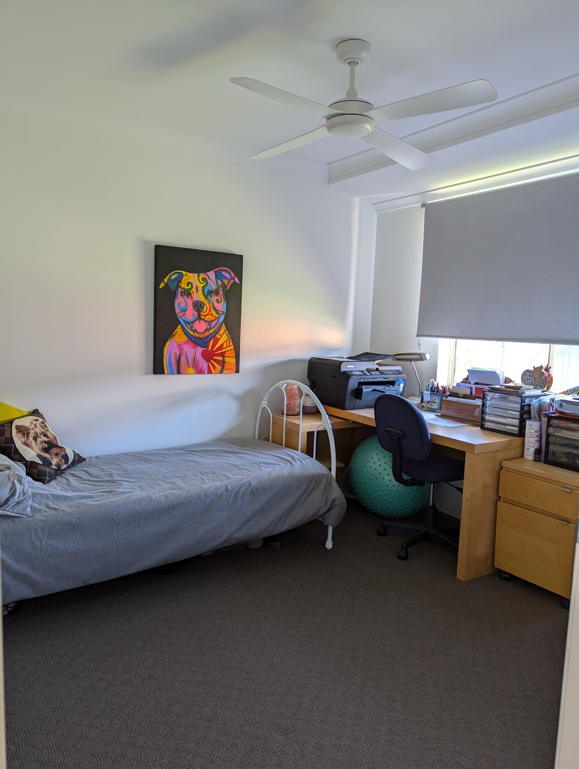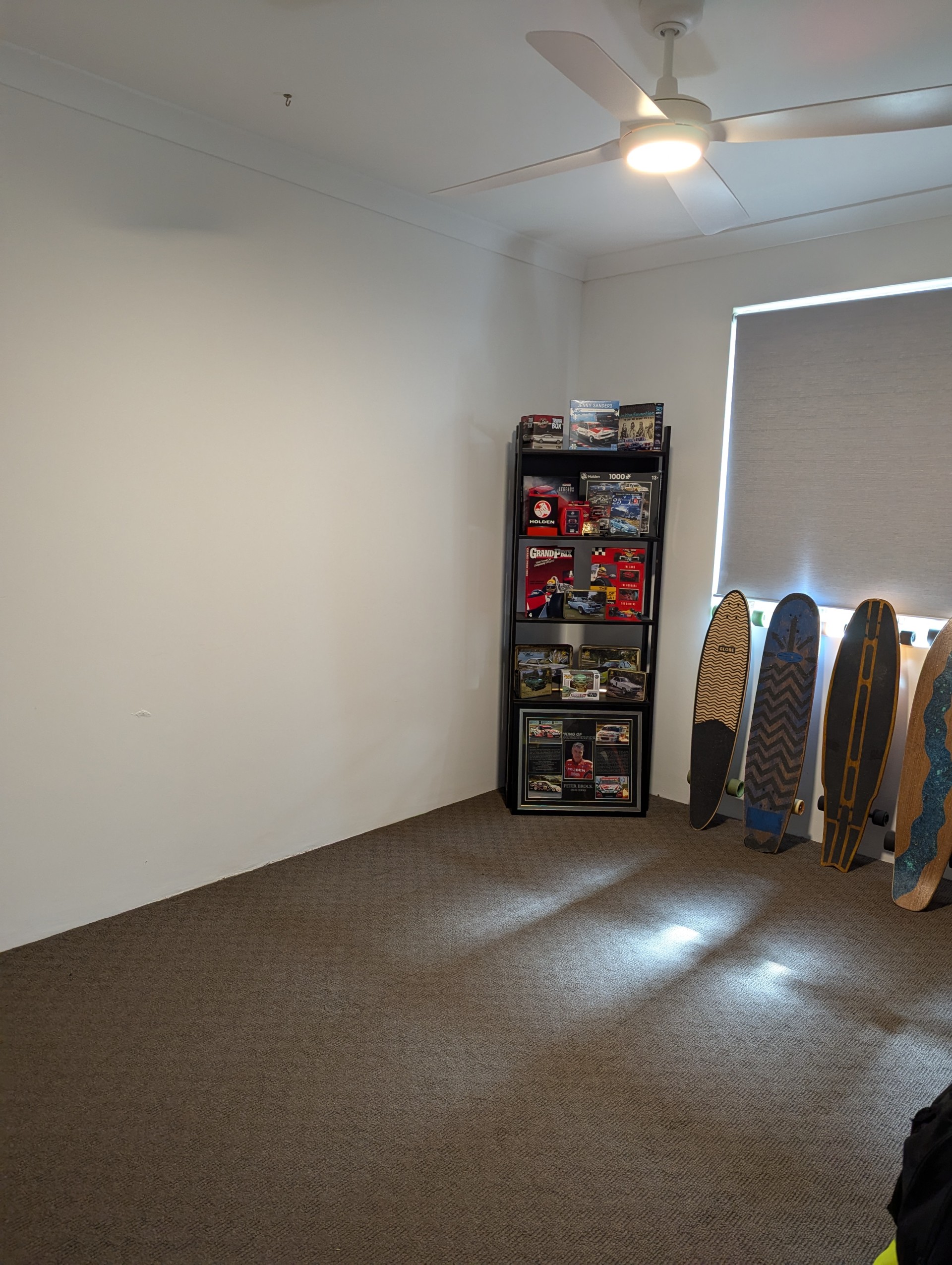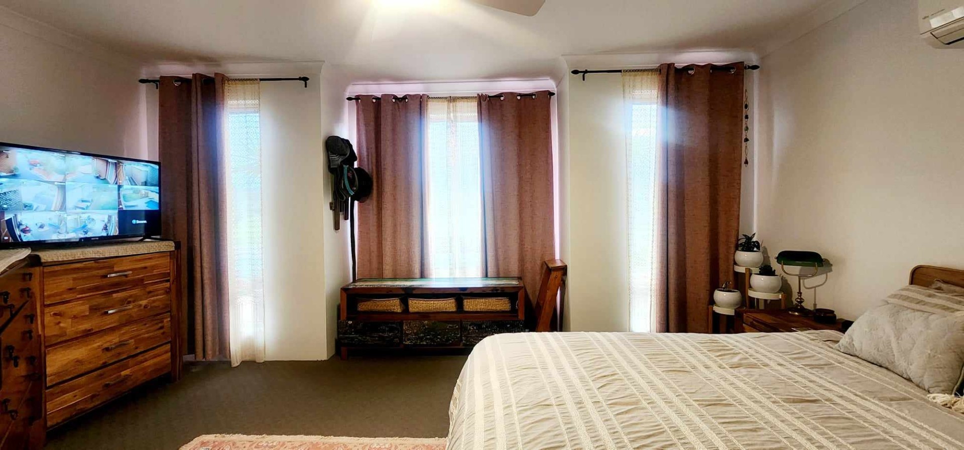 Stepping inside from the covered, relaxing porch area, where you can watch the kangaroos, is the entrance to the spacious master bedroom. The master is air-conditioned, easily accommodates a king-size bed, has a large WIR and features a cosy and comfortable ensuite. An activity/theatre room adjoins the entry and can be closed off from the rest of the house making for a separate parent's retreat, if desired. Both of these areas, as well as all bedrooms have remote ceiling fans with dimmable light functions.