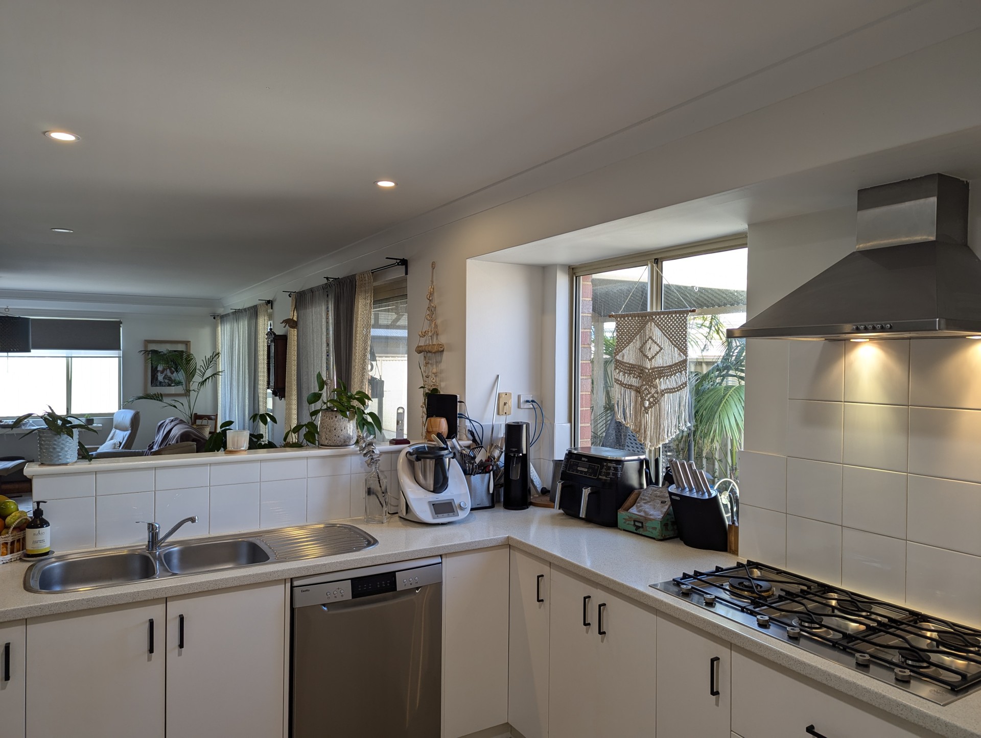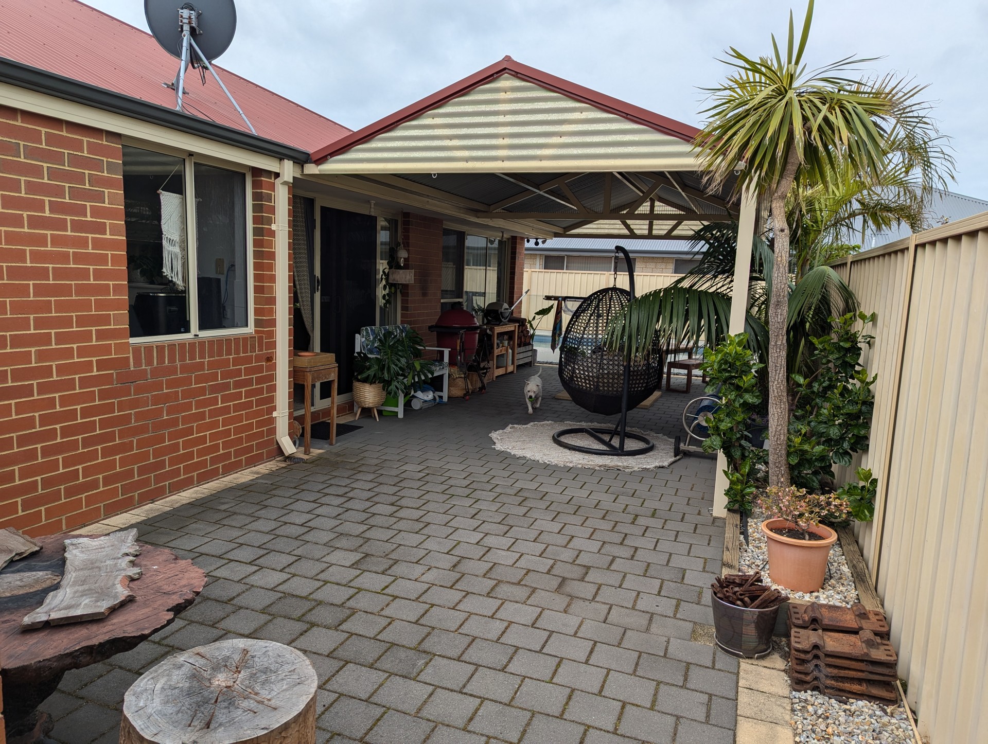 This solid double brick home is built on a 600m2 corner block with convenient boat or caravan access on the adjoining side street, additional access points on either side of the residence, as well as a two-car garage. It boasts beautiful fully reticulated, established gardens with fruiting olives trees and raised garden beds in the spacious backyard. Situated on a corner block opposite a park and nature reserve this home sets the scene for a relaxed lifestyle and comes with an 8 camera CCTV system, for extra piece of mind .