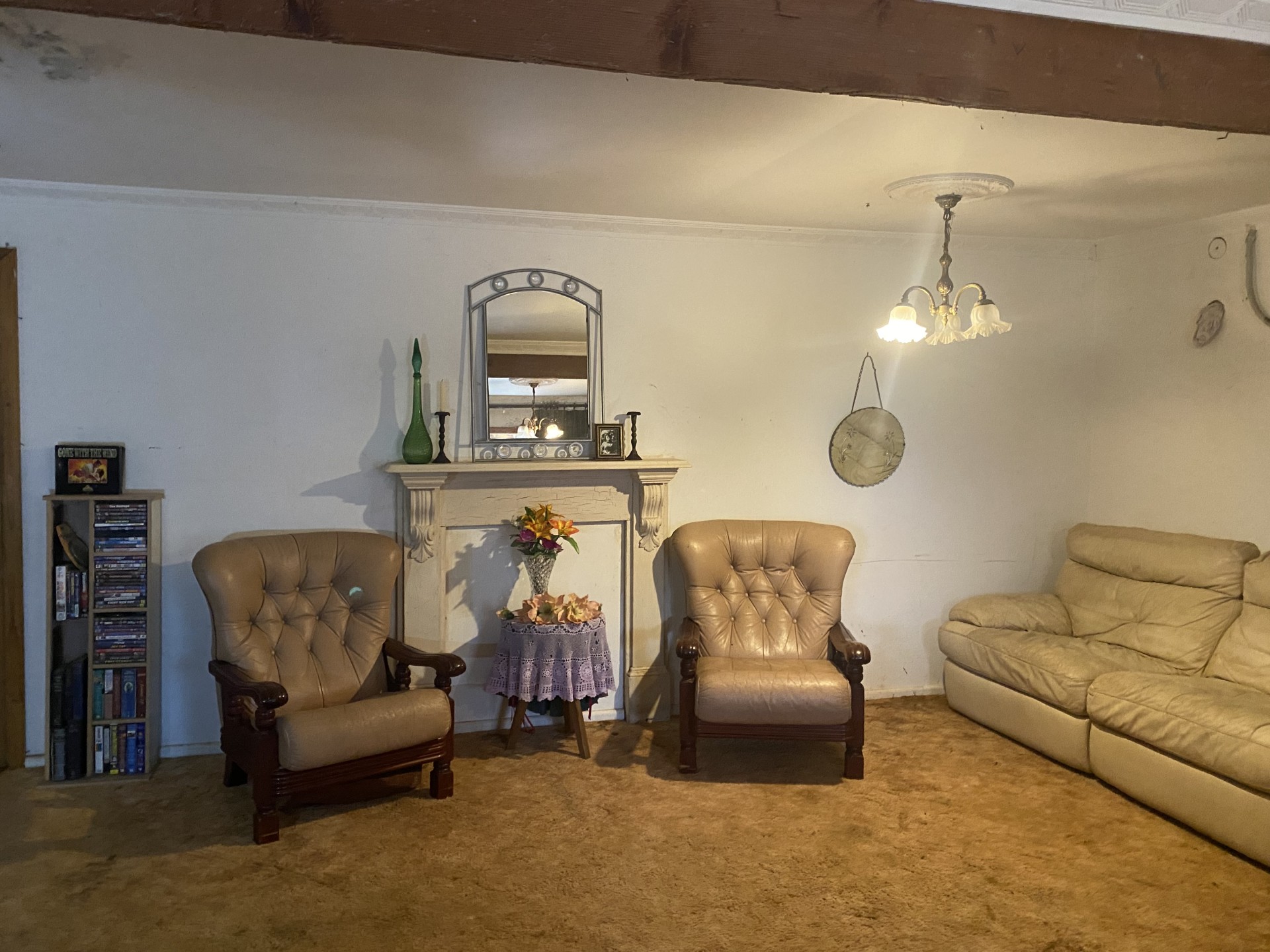 Main dwelling is a large 4 bedroom 2 bathroom rustic appearance timber and fibro clad (lap board) feature cottage. Carpet in elevated area wood heater and open fireplace in large kitchen and large stone open fireplace in adjacent family room. Reverse cycle air conditioning up stairs. Bed sitter room large kitchen separate dining and lounge room plus family room and sewing room, laundry bathroom and 2 toilets. House is in need of some renovation.