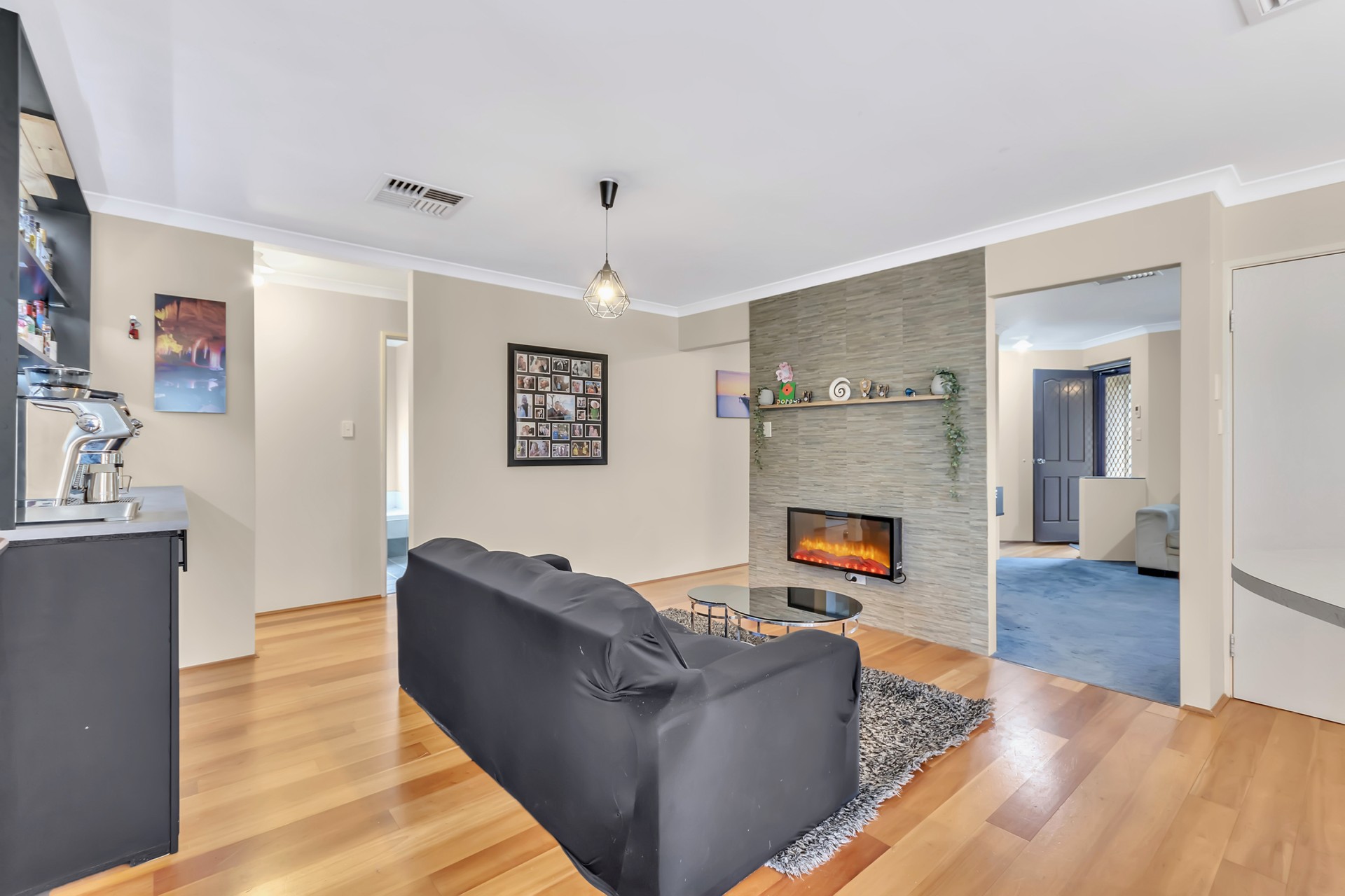 Open-Plan Living: Seamless flow from the kitchen to the living and dining areas.