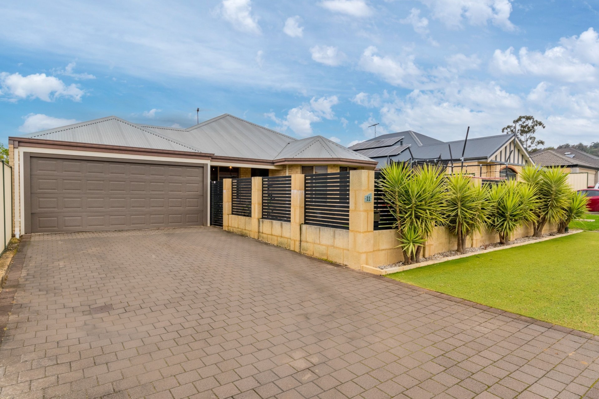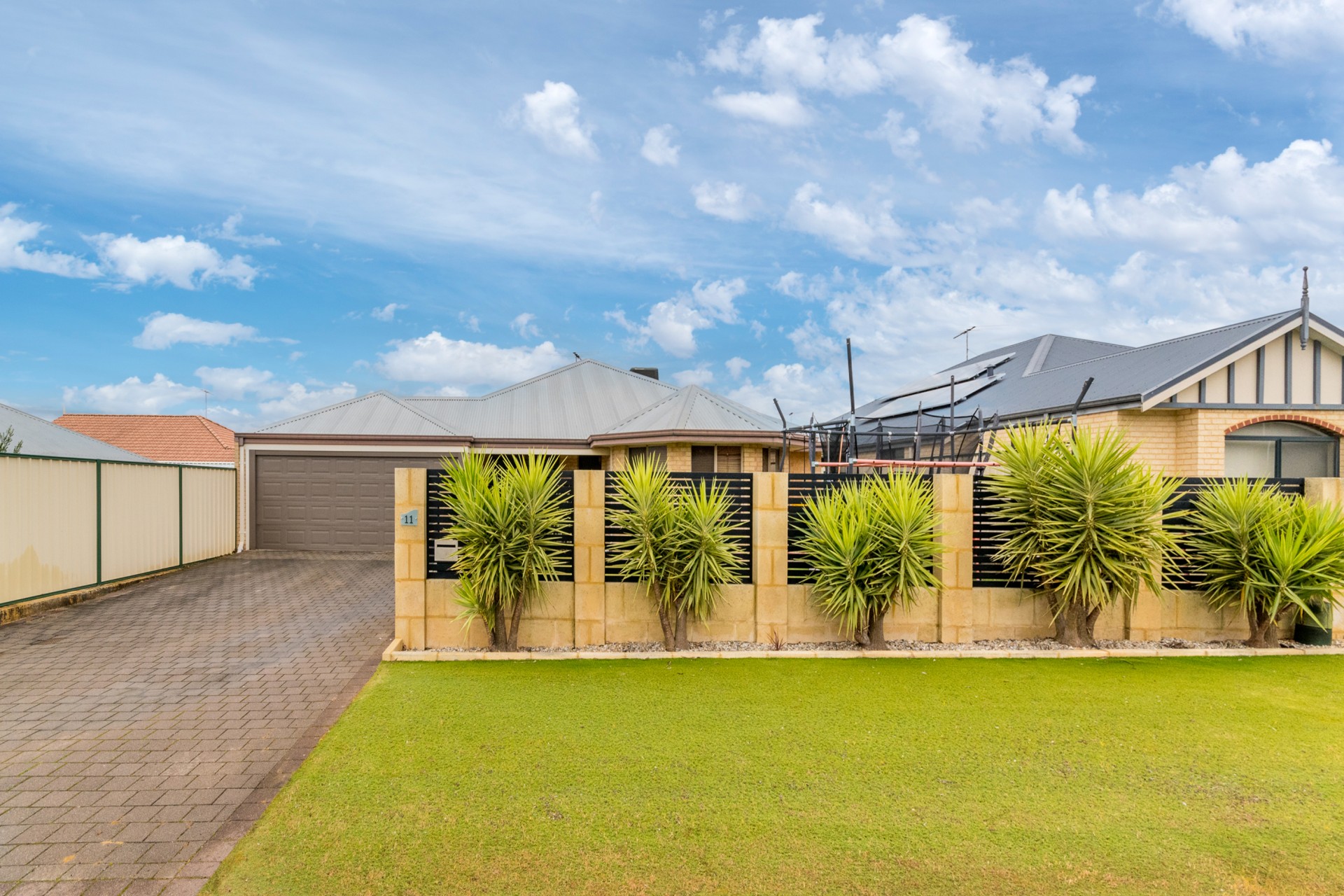 Stunning Limestone Frontage: Custom built limestone wall adds privacy and curb appeal.