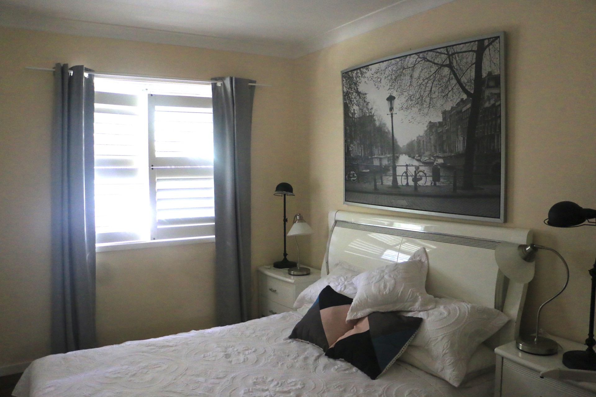 Upstairs, polished hardwood floors and abundant natural light define the open-plan family/dining area, complete with air conditioning and access to a large, north-facing deck. The oversized kitchen includes a dishwasher and generous counter space, while the upper-level bathroom features a separate toilet and well-maintained tiling. All three bedrooms on this level include built-in wardrobes, with the master bedroom equipped with its own split system air conditioner.