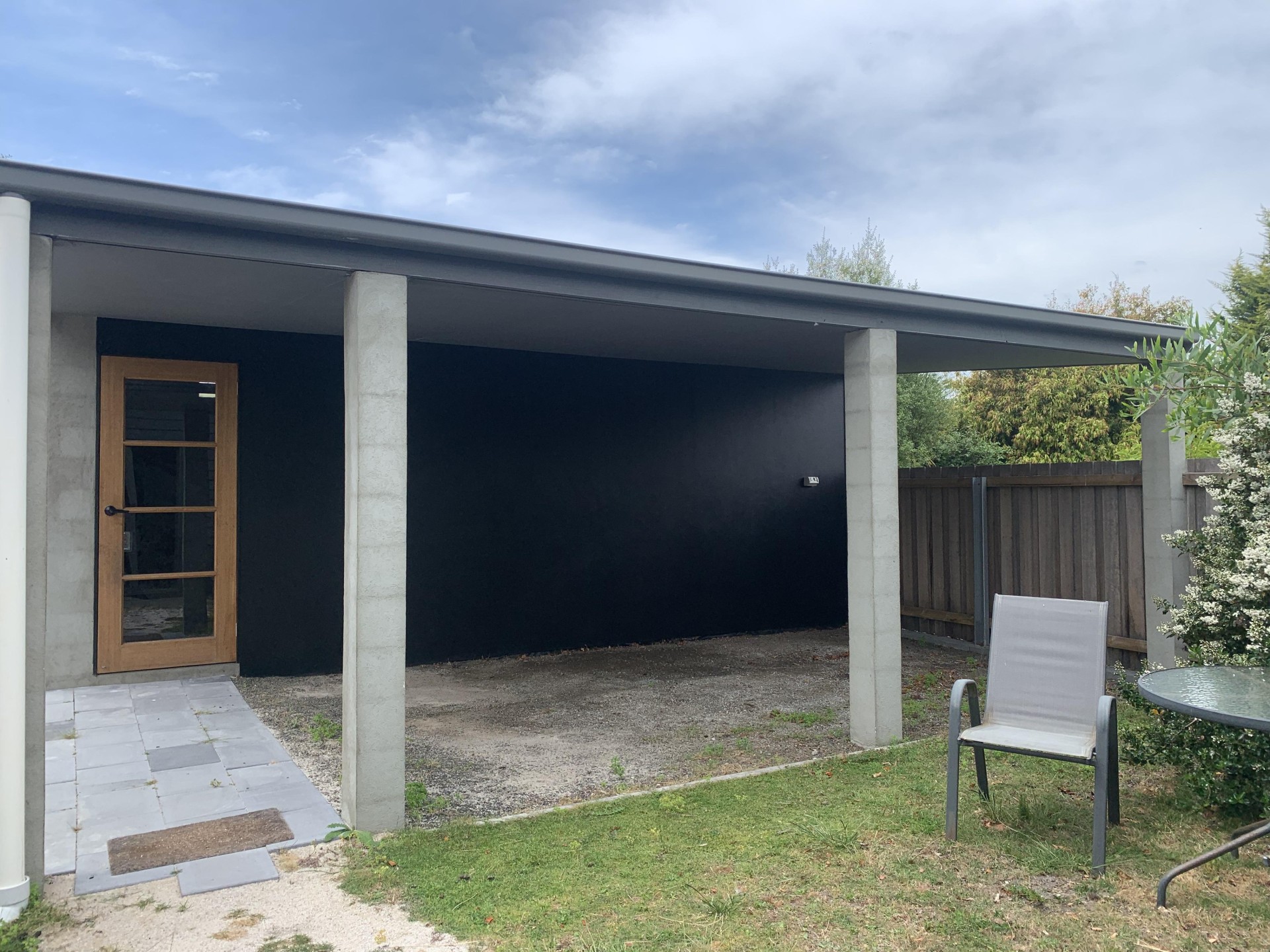 Garage with remote control access, plus carport for off street and visitor parking. Room for garden, trailer, caravan and/or storage