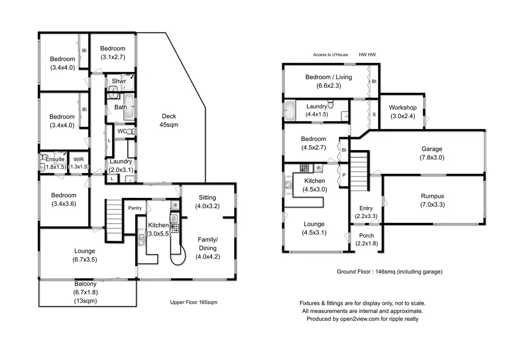 The house: four bedrooms, two bathrooms, kitchen, sitting room, family room, lounge, rumpus room, balcony, deck and a one-car garage, as well as a garden shed. The garden shed is shared with the apartment.
