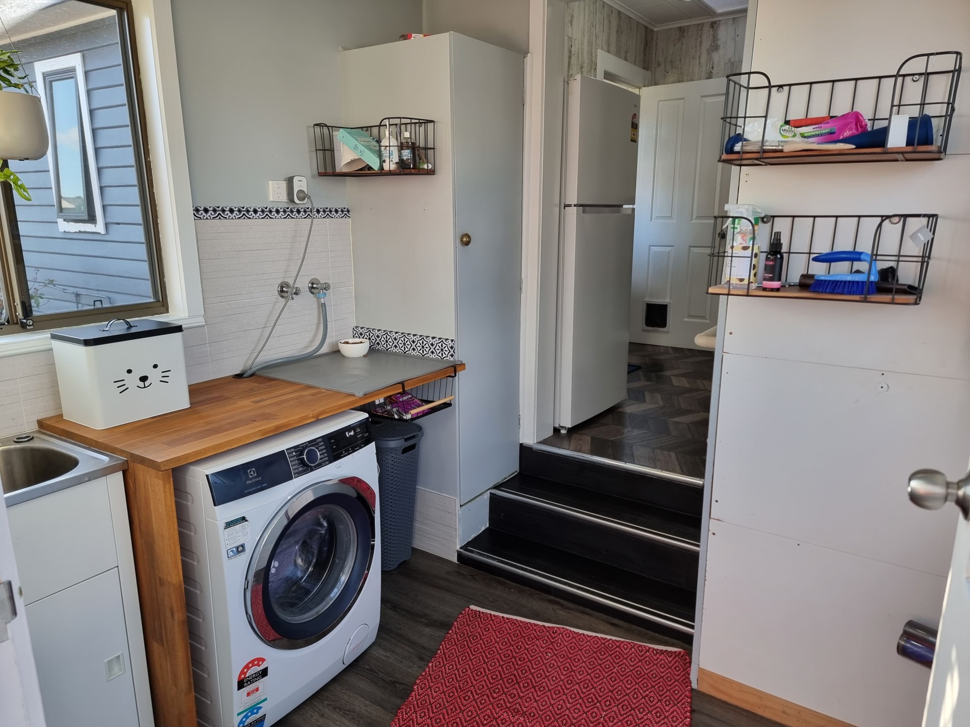 New laundry. Neat and tidy and plenty of storage. Off the back of the laundry is a fully enclosed patio/catio. Great little entertaining area or just a safe outdoor space for your pets.