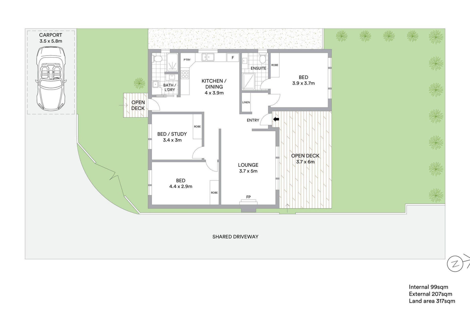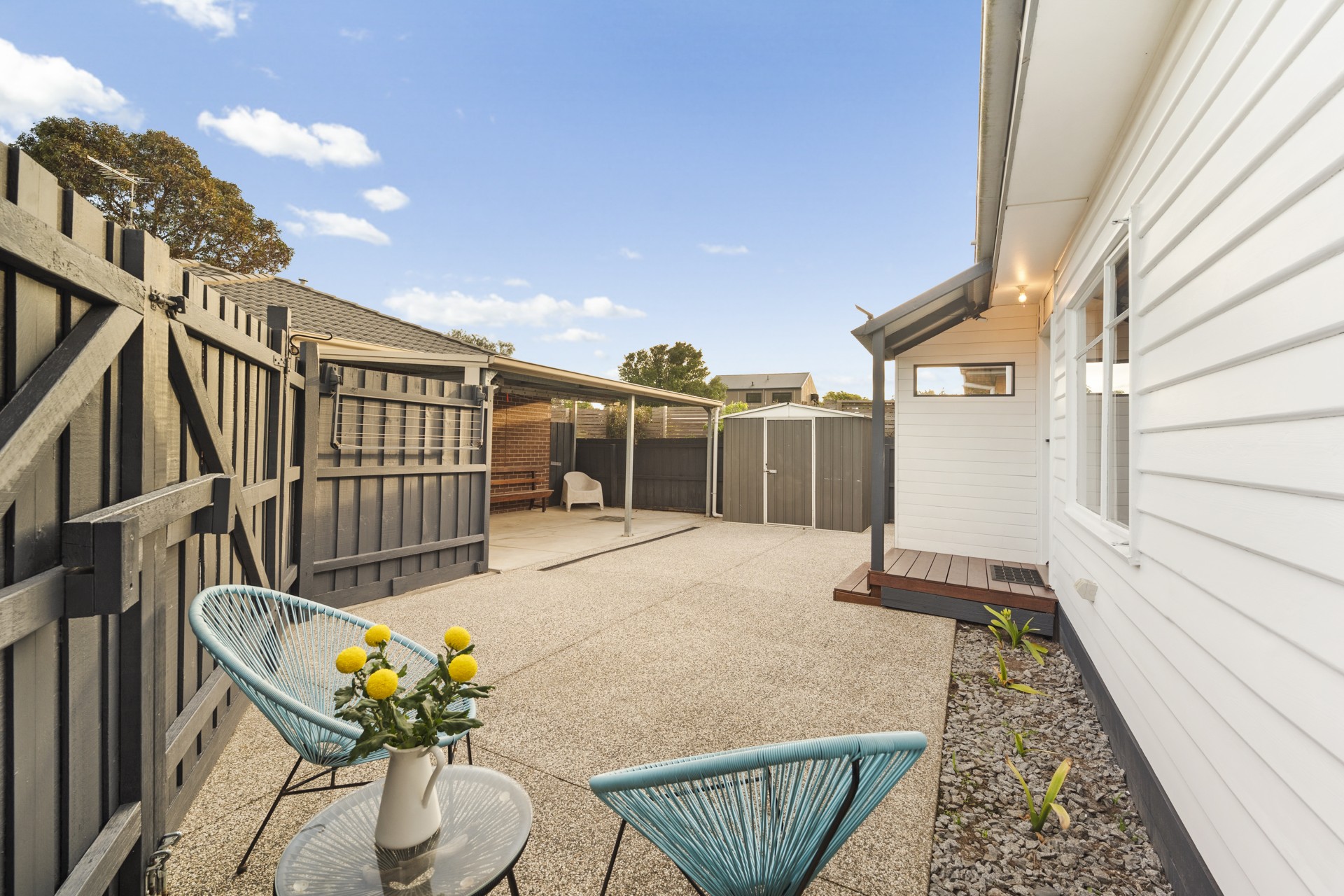 - Carport with roller door and garden shed