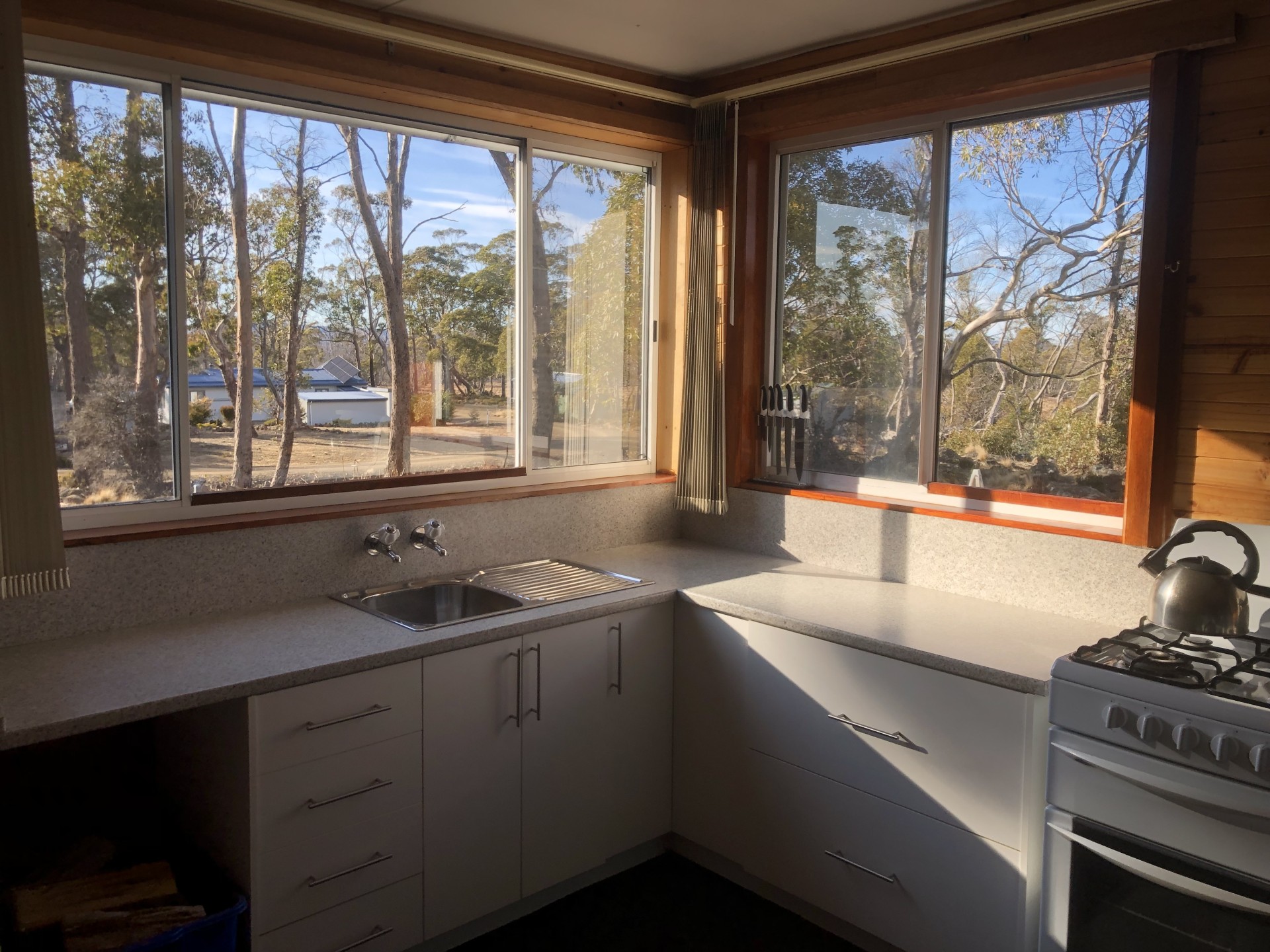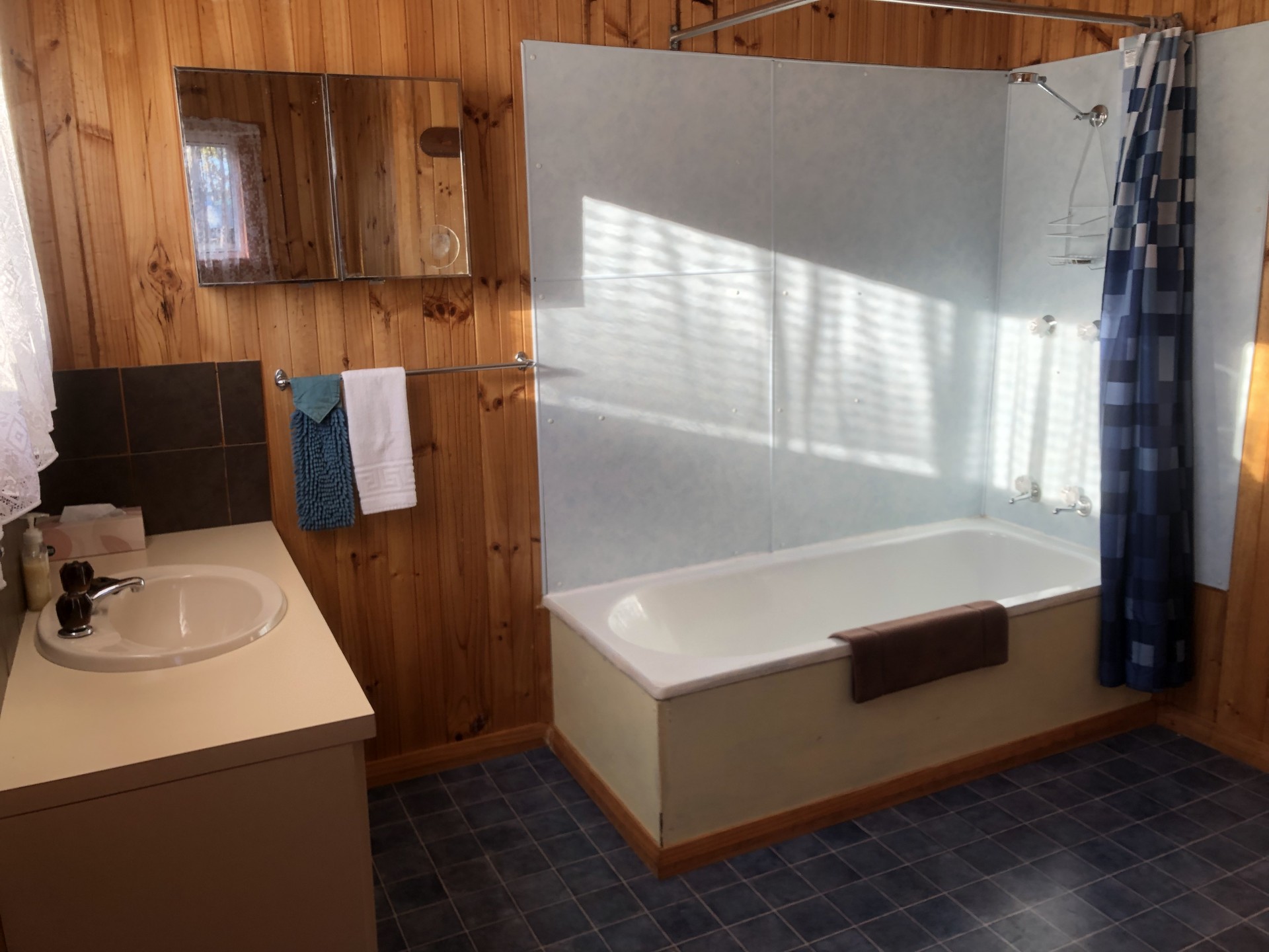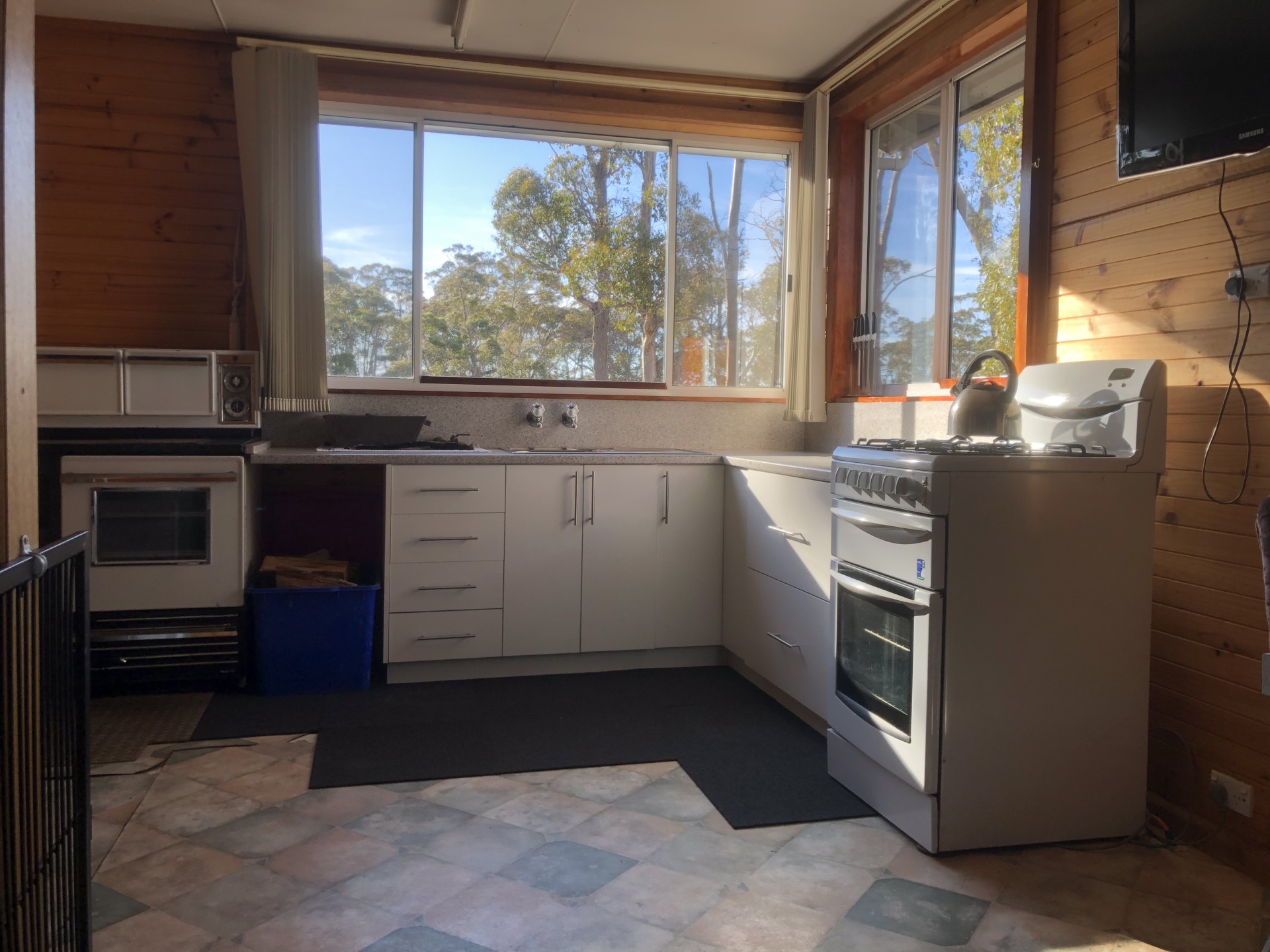 This off grid property offers open plan living with an updated kitchen fitted with a combustion / wood fired oven as well as a gas stovetop and oven, gas fridge / freezer and plenty of cupboard and bench space.