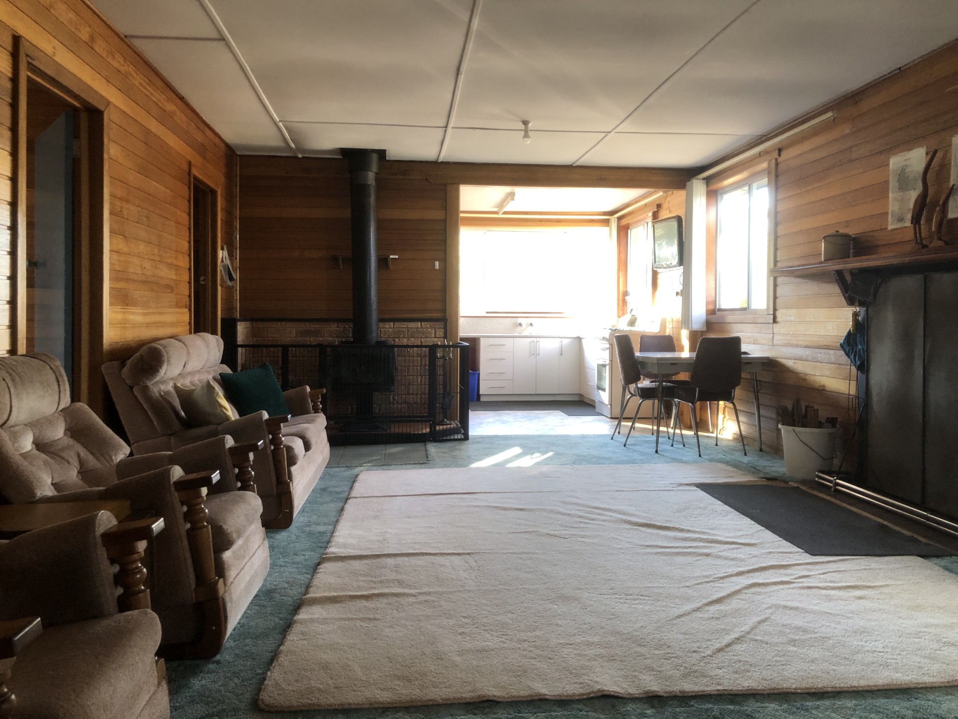 The living area has both a freestanding woodheater and an open fireplace to keep you warm and snug throughout the snowy winters.