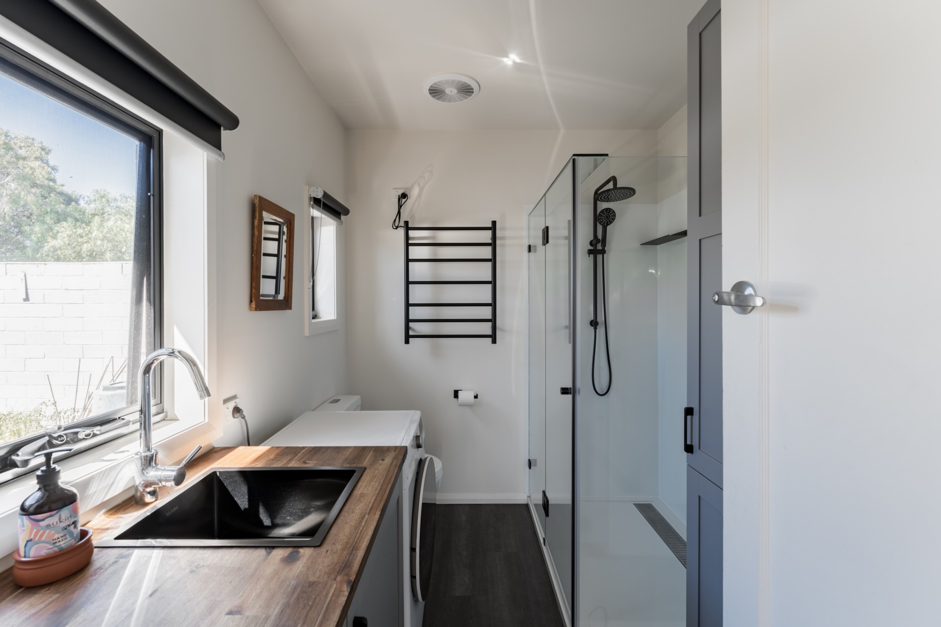 With its original wide Tasmanian Oak tongue and groove floorboards and bespoke 'Terrazzo' hearth in the lounge, this home effortlessly blends mid-century elegance with stunning modern touches.