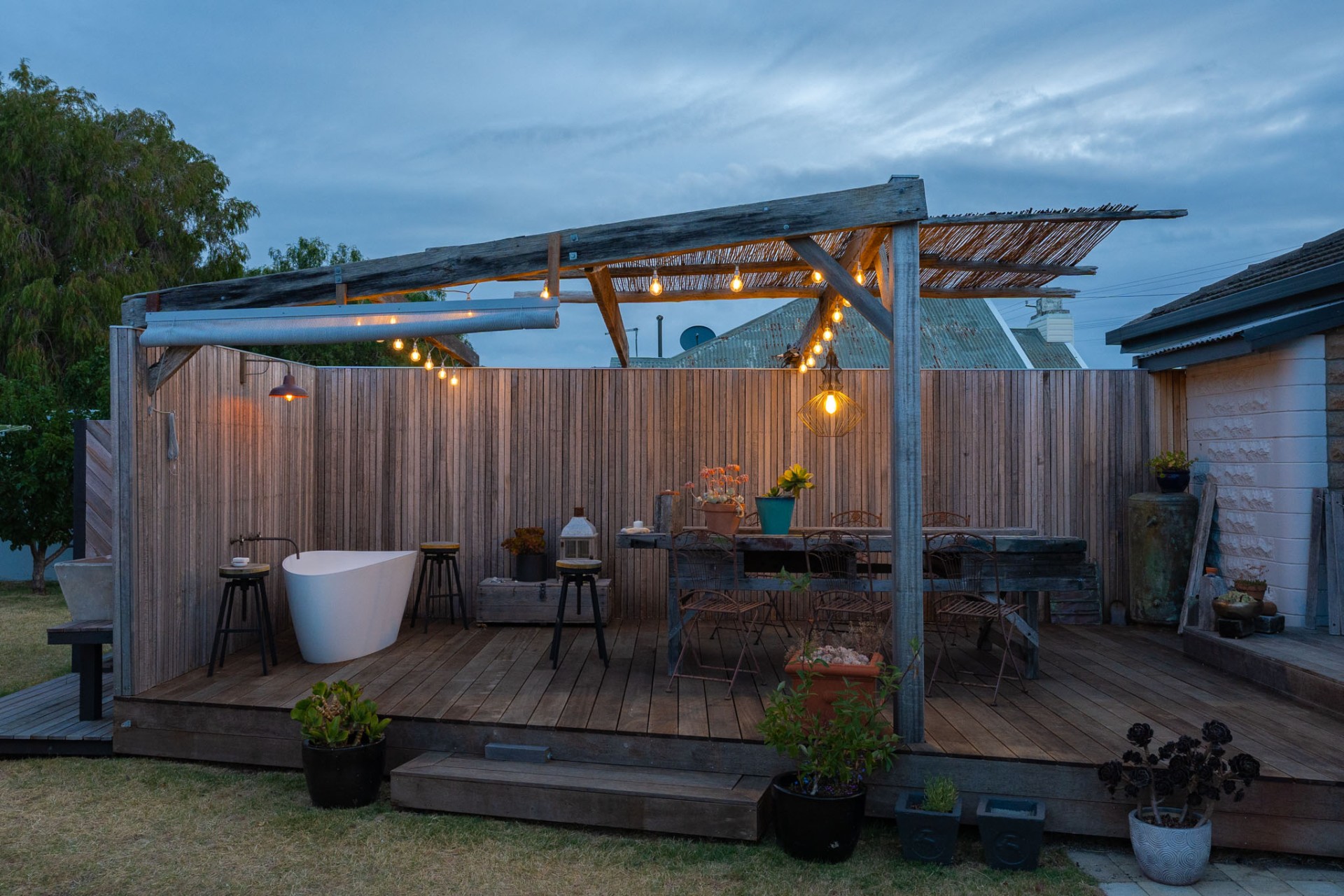 • Stunning Entertaining Deck: The outdoor entertaining area is a true oasis, complete with a deep bath plumbed with hot and cold water, perfect for relaxation, plus an outdoor shower for convenience after a day at the beach.