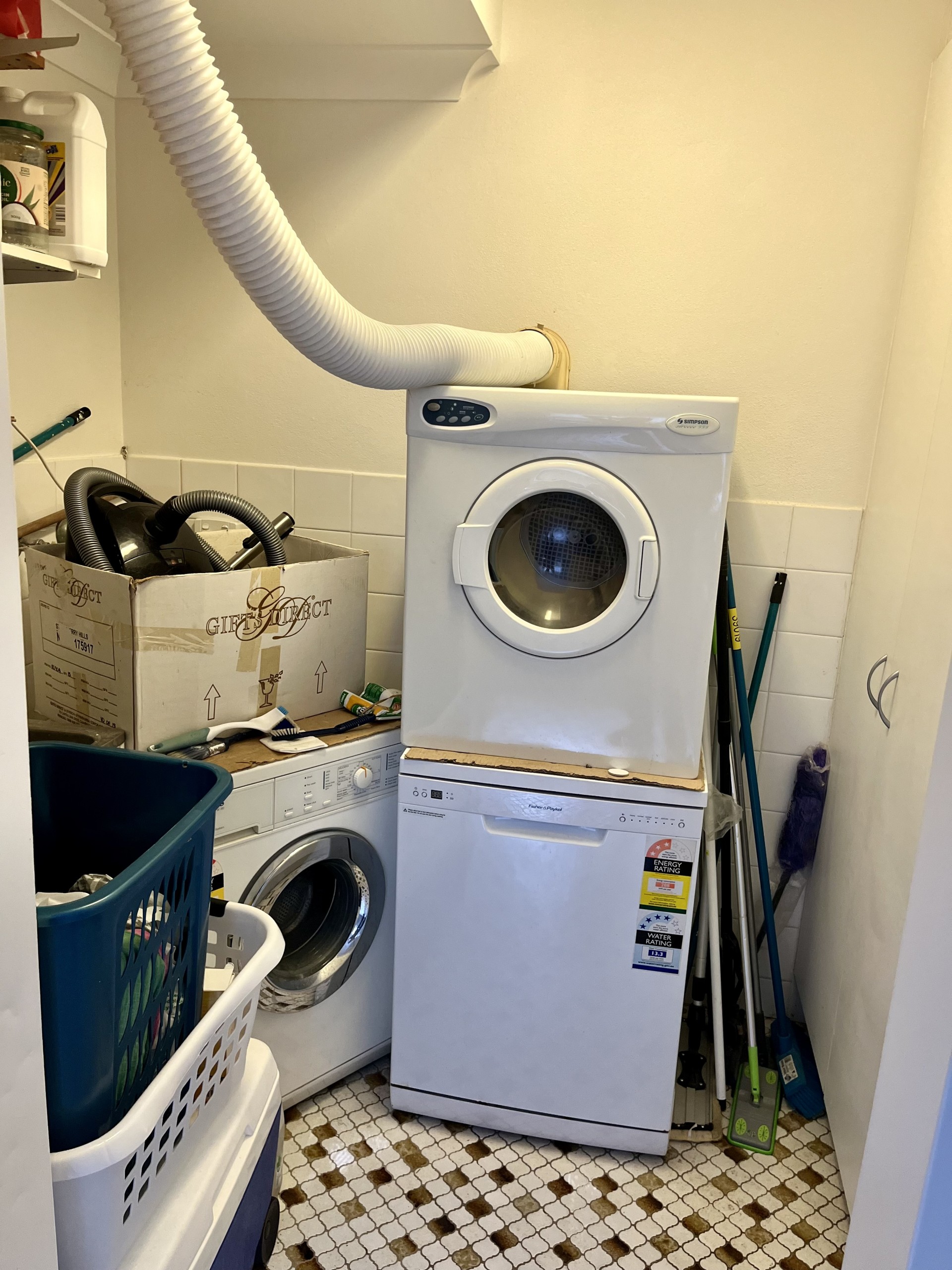 * Internal laundry room with storage cabinet.
