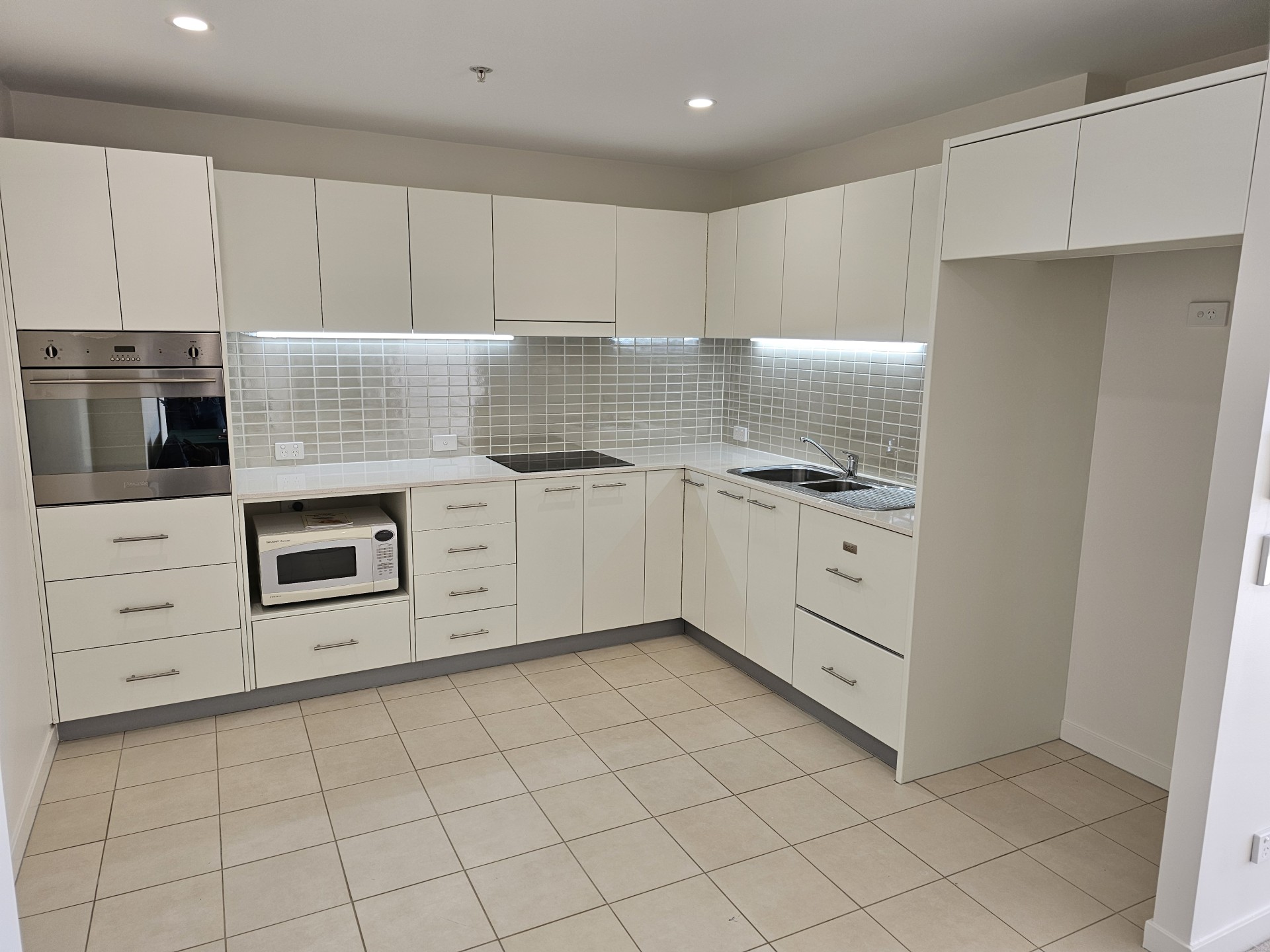 • Modern kitchen with bright over bench lighting