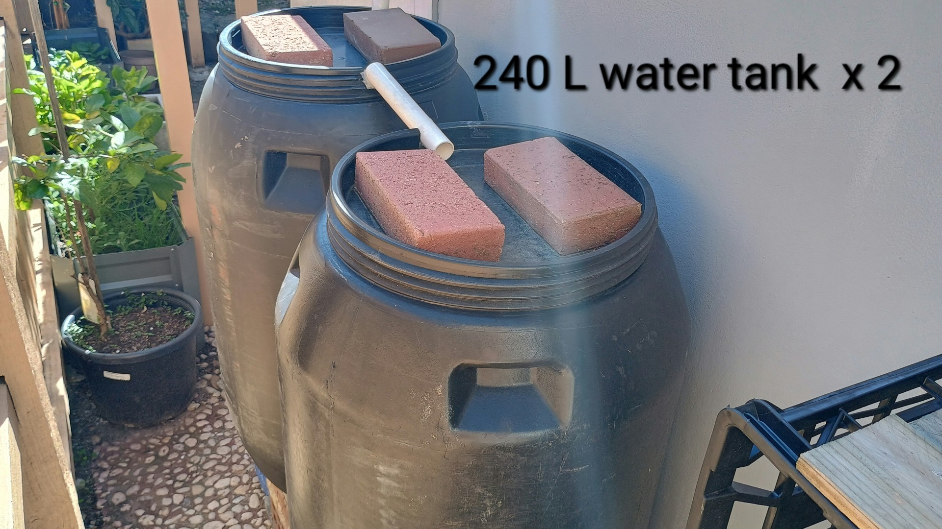2. Two water tanks providing approximate capacity of 500 litres - great for gardening and backup in case of water interruption.