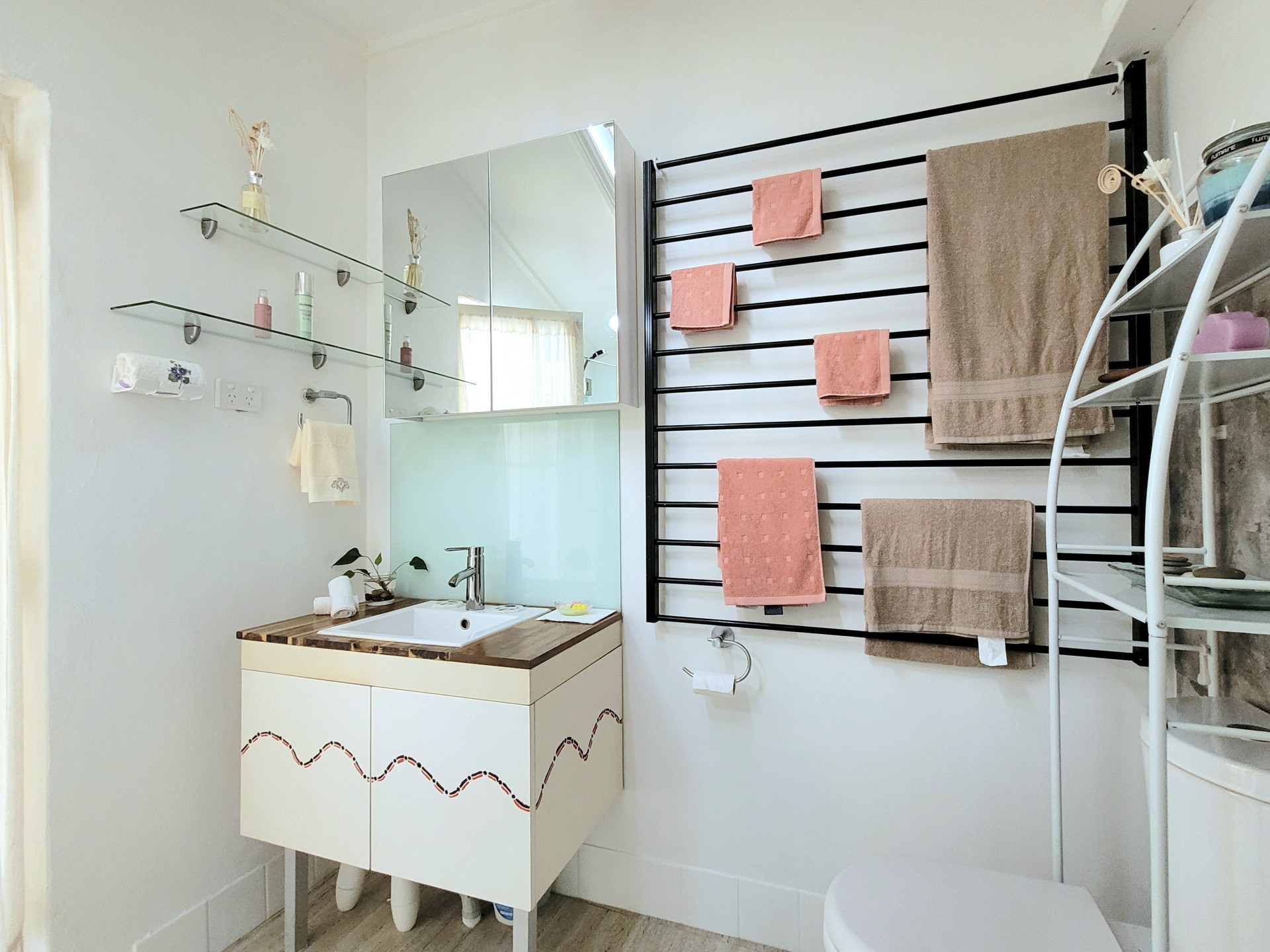 27. Acacia wood in kitchen bathroom benchtop.