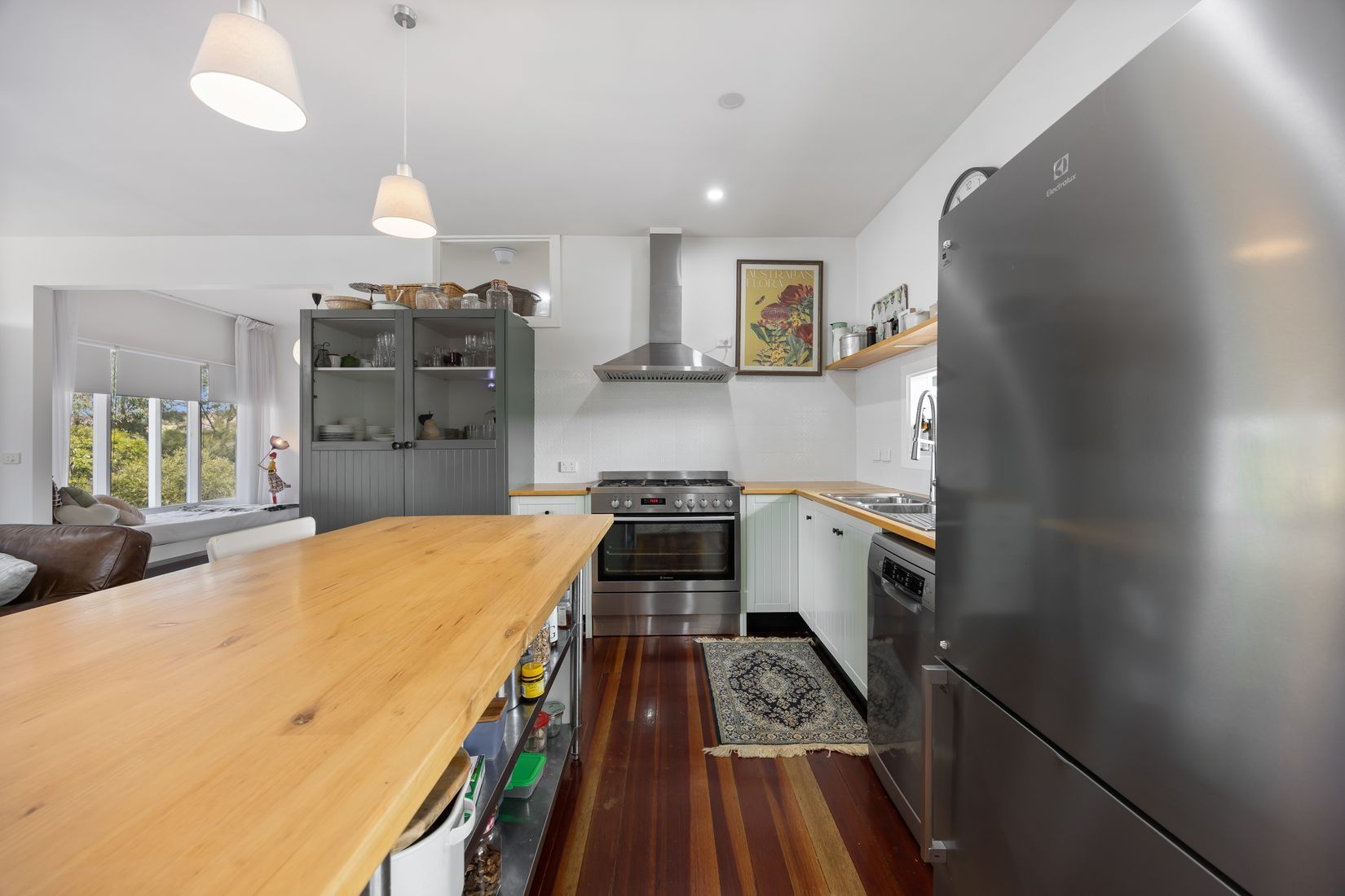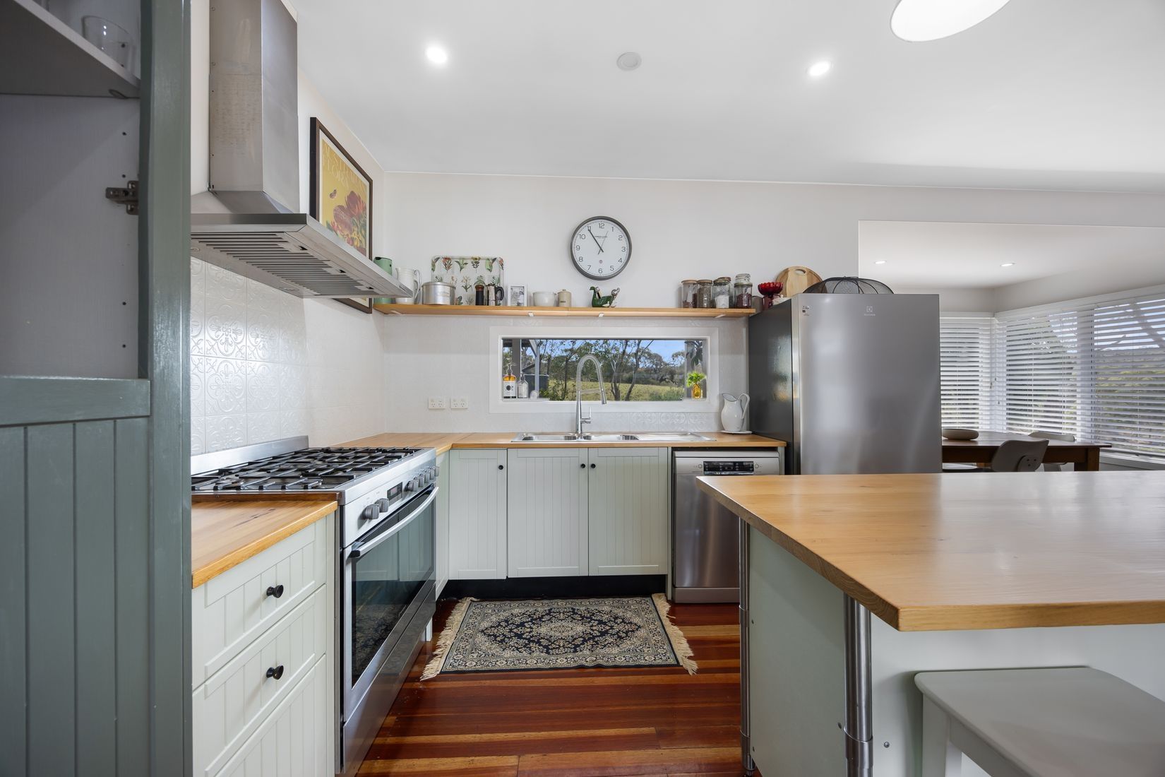 The updated kitchen is a cook's delight equipped with modern appliances, timber top benches and an adjoining dining/sunroom perfect for entertaining.