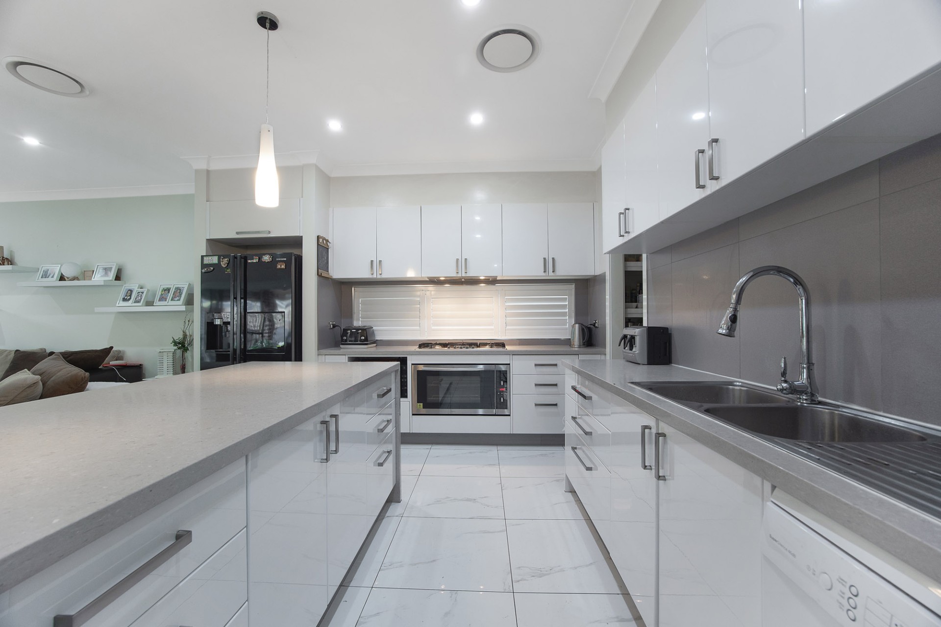 - Large modern kitchen with gas cooktop, double sinks and walk-in wardrobe