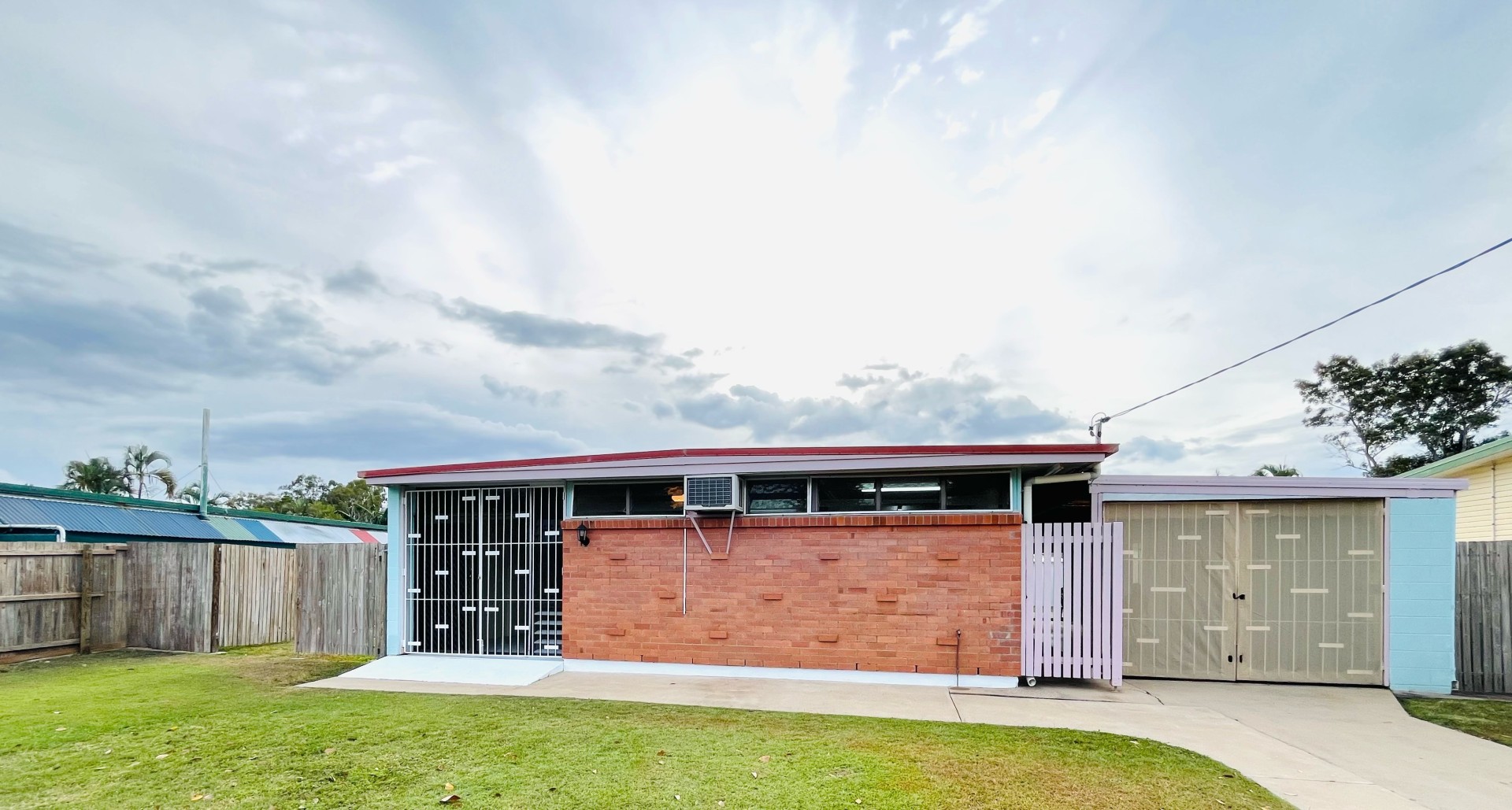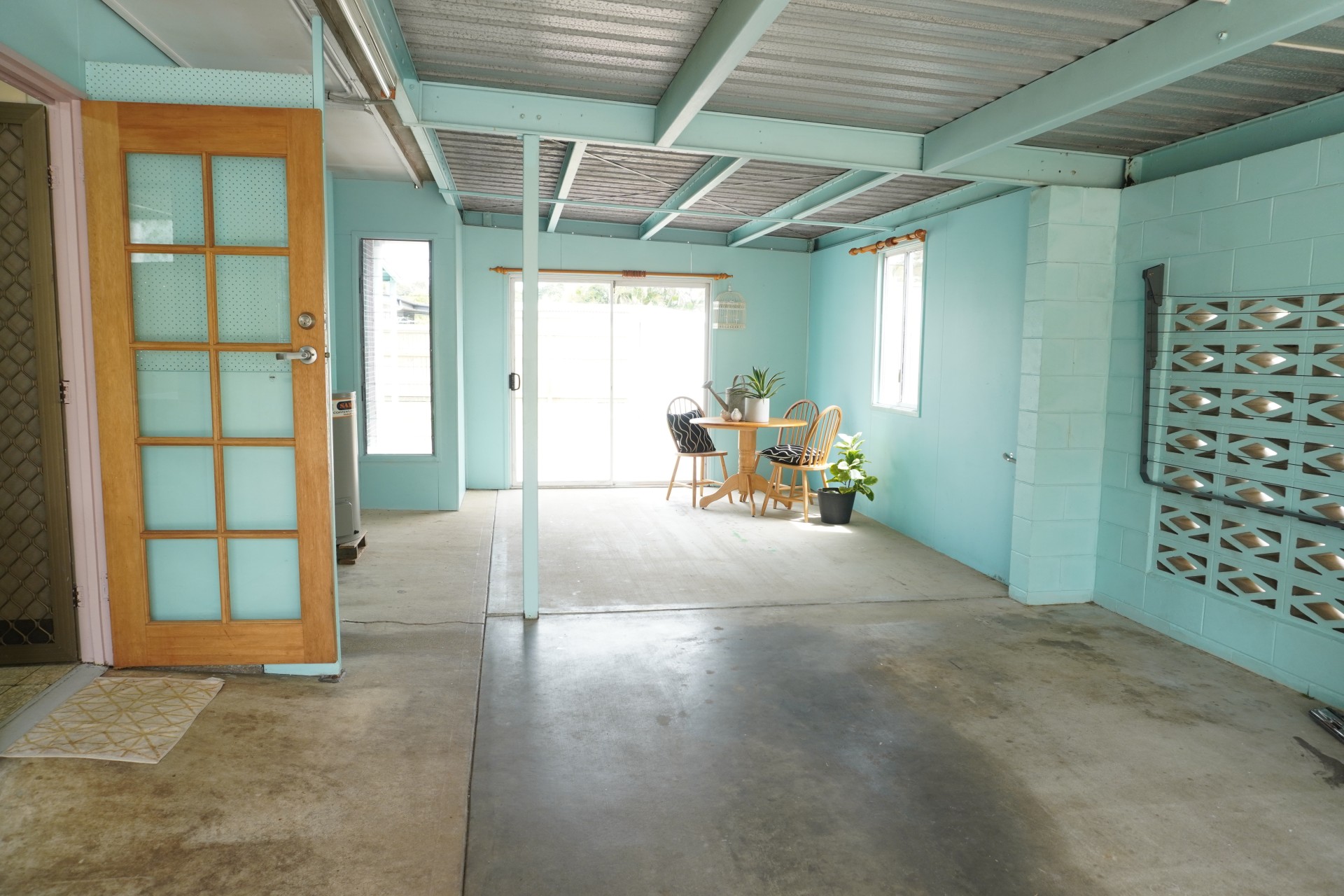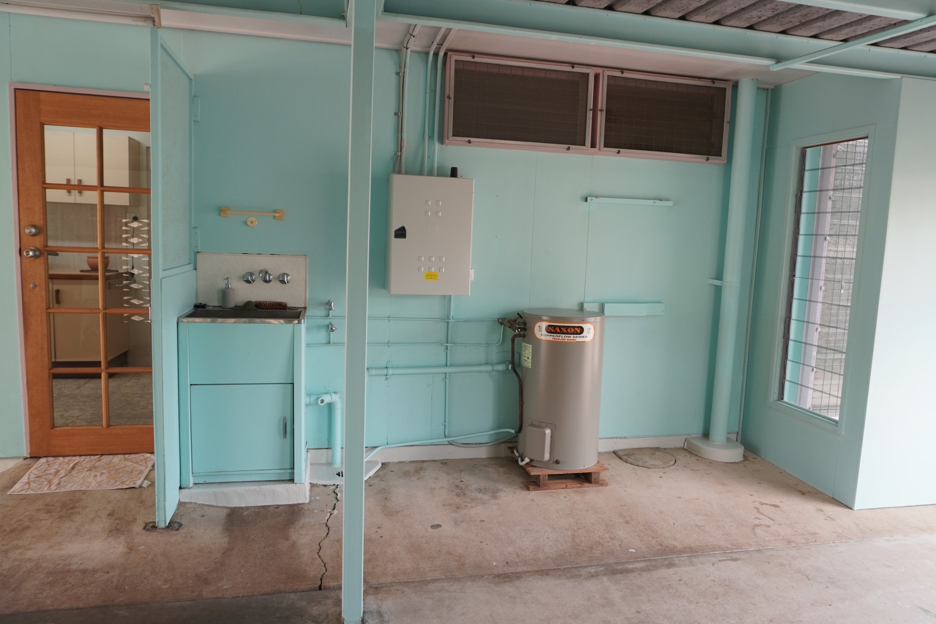 3 bedrooms, 1 bath, lawn locker, workshop, large multipurpose area and a 2 car carport