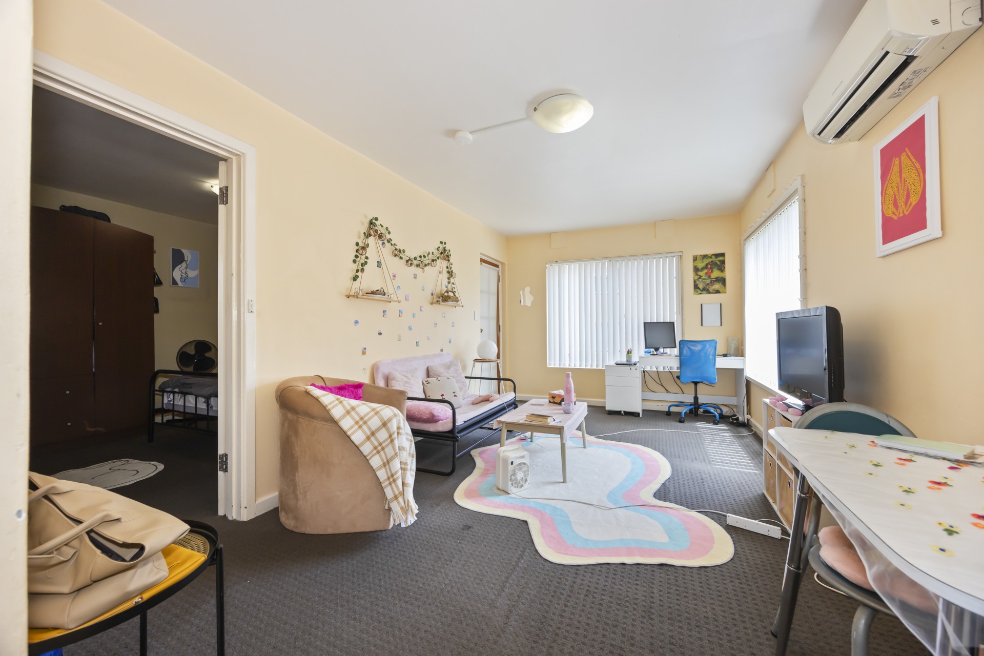 • Open-plan living area with reverse cycle air conditioning.